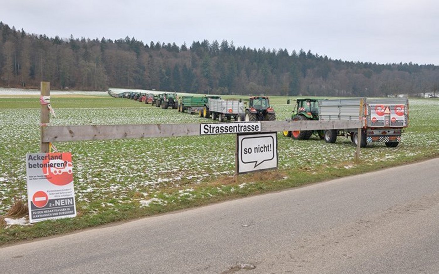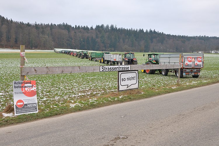 Pläne zu lesen und sich die Folgen eines Bauvorhabens im Feld vorzustellen, ist für Ungeübte keine leichte Aufgabe. In einer Protestaktion haben Landwirte aus der Region zusammengespannt, und mit 70 Traktoren anschaulich den Verlauf der geplanten Umfahrung Aarwangen gezeigt. Zusammen bis zuletzt kämpfen «Es war unter den Bauern eine grosse Solidarität spürbar», zitiert die IG «Natur statt Beton» Simon Rickli. Der…