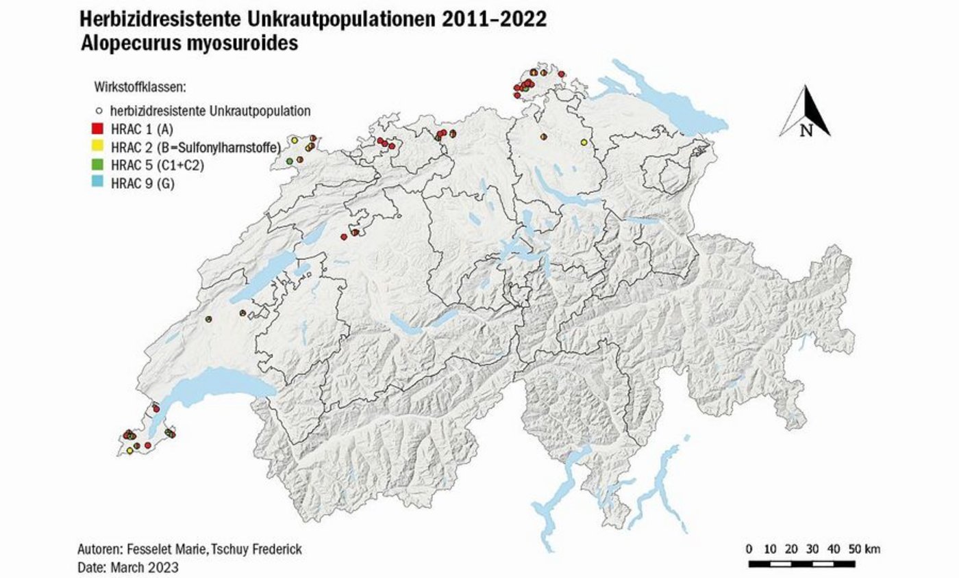 «Ich lebe mit dem herbizidresistenten Ackerfuchsschwanz», sagt Christian Vogelsanger. Der Landwirt aus Siblingen SH bewirtschaftet 64 ha LN, von denen sicher die Hälfte je nach Jahr mal mehr, mal weniger stark von resistentem Ackerfuchsschwanz (AF) betroffen sei. Das hartnäckige Ungras beschäftige ihn auf seinem Betrieb bereits zehn bis zwölf Jahre, schätzt Vogelsanger, «schleichend ist das Problem grösser geworden».…