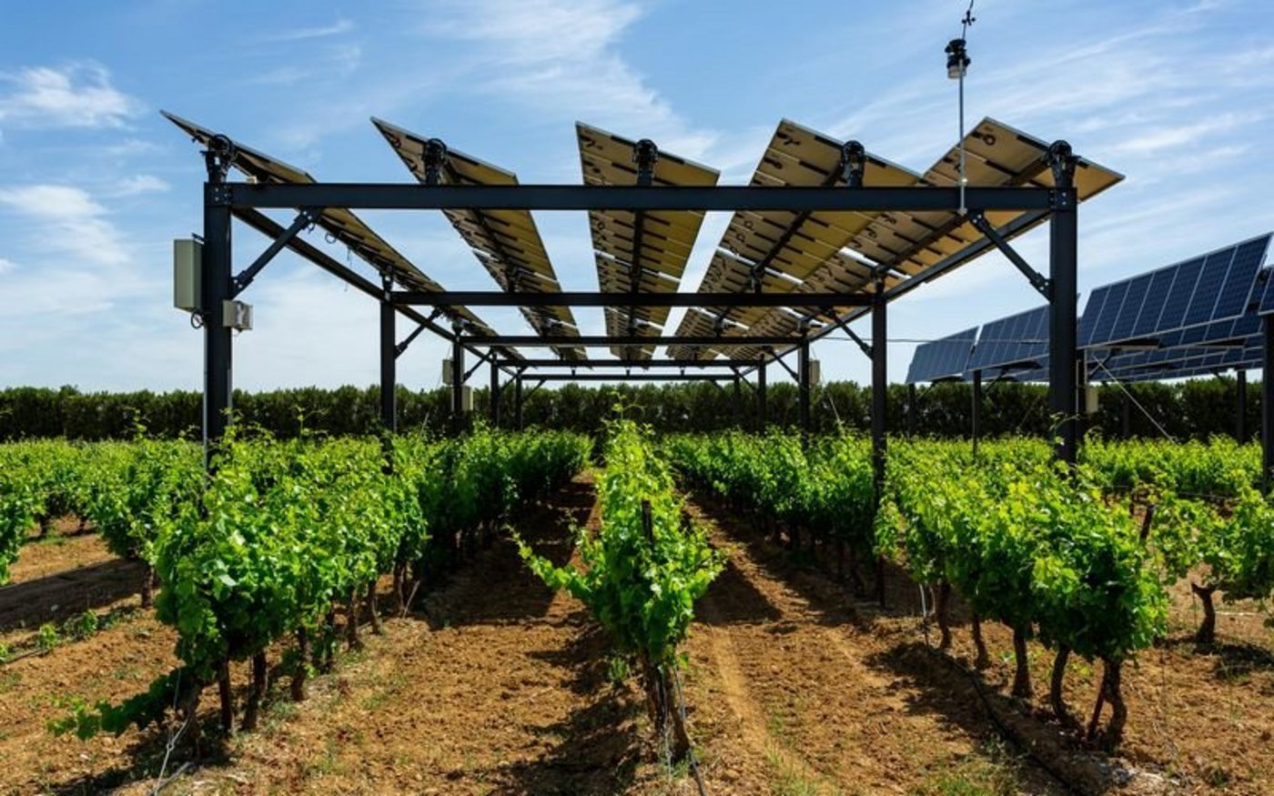 In Südfrankreich steht eine solche Anlage über 4,5 Hektaren Weinreben, die im Rahmen des französischen staatlichen APV-Förderprogramms Sun Agri erstellt wurde. Die Module werden zusätzlich unterstützt von Wetterdaten gesteuert. Wenn ein Starkregen naht, wechseln sie auf horizontal. Zudem arbeiten die Module zweiseitig, können also reflektierendes Licht vom Boden nutzen. Das erzeugt bis zu 13 Prozent mehr Stromertrag. Die gleiche Technologie mit beweglichen Modulen wird auch auf Gewächshäusern getestet.