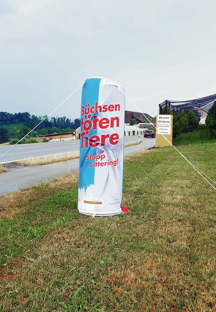 Luzerner Regierung, Gemeinden und Bauern wollen die Bevölkerung mehr sensibilisieren. Sie starten eine Kampagne, um mit aufblasbaren Büchsen auf die Risiken von Littering aufmerksam zu machen.