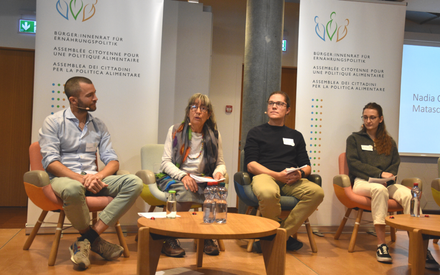 Auch eine sukzessive Reduktion des Futterbaus um 30 Prozent bis 2030 empfiehlt der Bürger(innen)rat. Der Bund solle definieren, welche pflanzlichen Lebensmittel anstelle dessen angebaut werden, «da Veränderungen durch freiwillige Massnahmen nicht umgesetzt werden». An der Medienkonferenz wurde die Frage gestellt, wie sich diese Pläne denn mit dem bäuerlichen Einkommen vertragen würden. «Die Not der Bauern hatte Platz», versicherte Bürgerin Yvonne Willi. Sie beobachte die Tendenz, dass Produzenten am einen Ende der Wurst und Konsumenten am anderen gegeneinander ausgespielt würden. «Aber es geht um die Wurst», illustrierte sie ihren Standpunkt. Man habe dieselben Ziele, sei gegenüber Handel und Verarbeitern aber oft machtlos. Eine Empfehlung sieht vor, die Verhandlungsposition von Produzent(innen) gegenüber anderen Marktakteuren zu stärken. «Wir haben versucht, die Wurst in Scheiben zu schneiden» fuhr die Bürgerin fort, «und wir kochen sie immer noch». Fleisch gehöre jedenfalls auch in Zukunft zur Ernährung, schloss Willi.