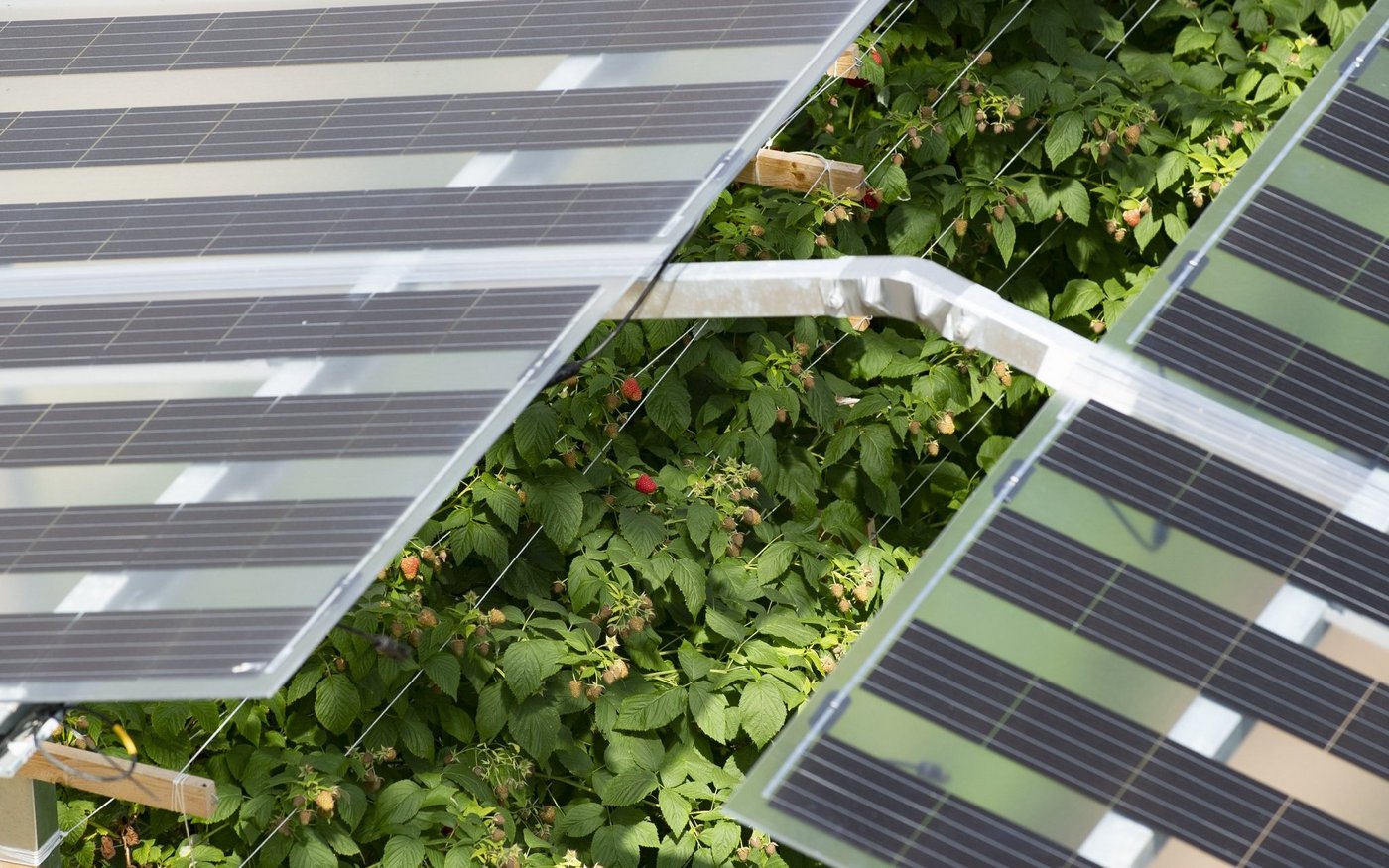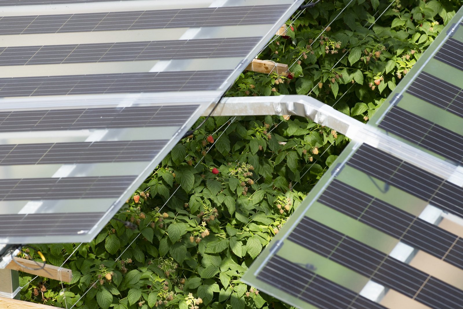 In den Niederlanden wachsen Himbeeren unter semitransparenten Solarzellen, die sie vor Hagel, Starkregen, Frost und zu starker Sonne schützen, wie David Eppenberger anlässlich des Fachkongesses Agrivoltaics 2020 berichtete. Die Pflanzen kühlen die Luft, was die Stromproduktion verbessert und sie verlieren ausserdem weniger Wasser. Agroscope forscht im Walliser Ort Conthey ebenfalls zum Beerenanbau unter Solar. Dort kommen Paneele zum Einsatz, deren Lichtdurchlässigkeit steuerbar ist.