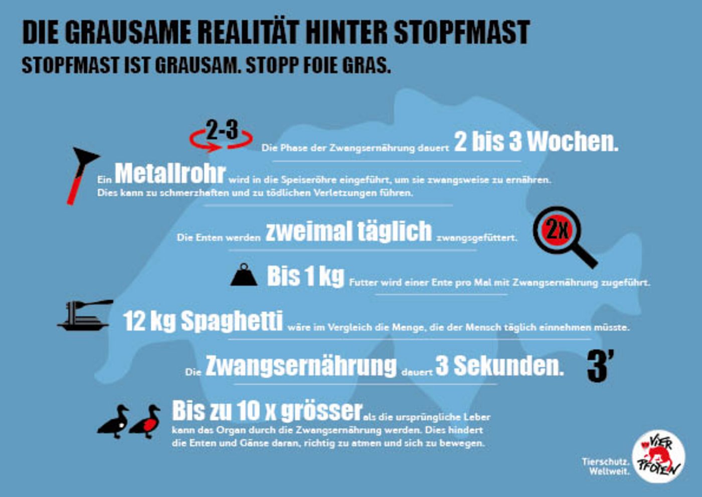 Vier Pfoten fordert den Ständerat auf, dem Nationalrat zu folgen und sich für ein Importverbot von Stopfleber auszusprechen.