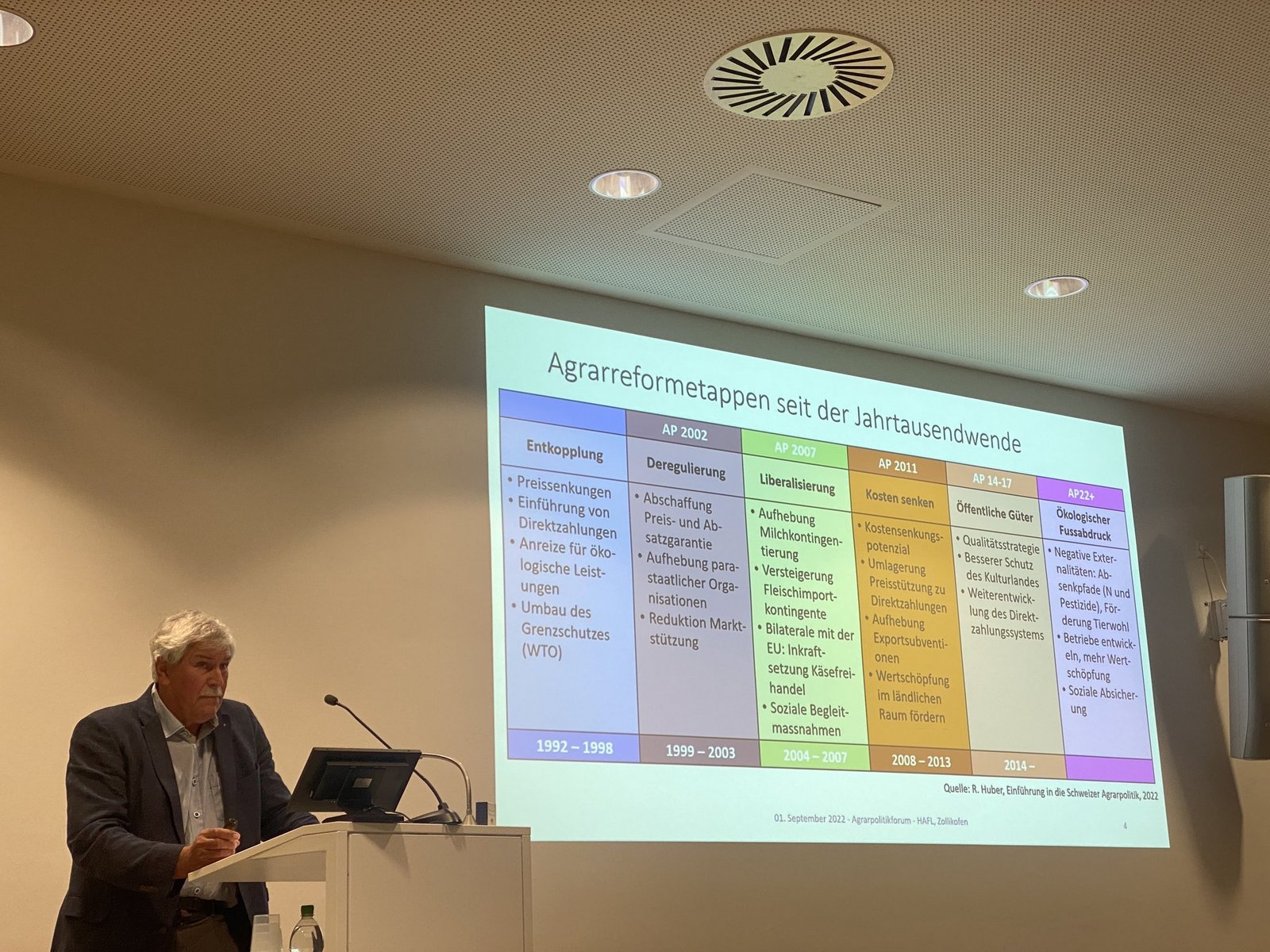 Am diesjährigen Agrarpolitikforum stellte sich die gastgebende Hochschule für Agrar-, Forst- und Lebensmittelwissenschaften (Hafl) die Frage, wohin es mit der Schweizer Agrarpolitik hingeht. Dabei gäbe es gemäss Martin Pidoux, dem Dozent für Agrarpolitik der Hafl, zwei mögliche Wege: entweder gäbe es eine substantielle Anpassung der aktuellen Agrarpolitik (AP) oder aber eine grundlegende Veränderung, er sprach sogar von einem Paradigmenwechsel. «Es ist ein unbeständiges politisches Umfeld», bekannte Pidoux, und die Landwirtinnen und Landwirte seien schon vielen Veränderungen ausgesetzt worden. Darum sei die Frage legitim, ob es eine neue AP überhaupt brauche.