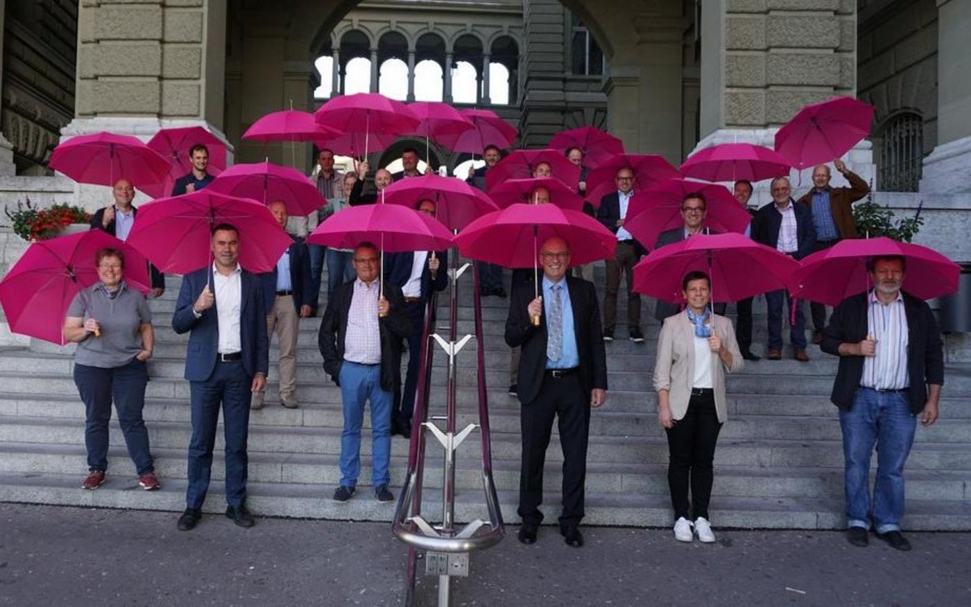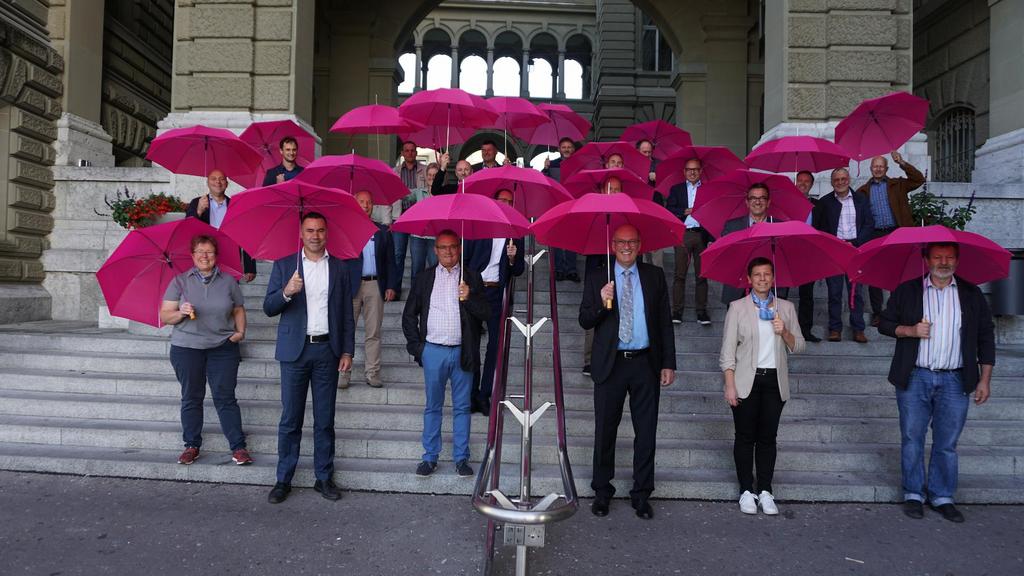 Am Montag spannten die Mitglieder des Vorstands des Schweizer Bauernverbands vor dem Bundeshaus in Bern symbolisch Regenschirme auf. Die Botschaft: «Wählen statt im Regen stehen». Wer nicht wolle, dass die Bauernfamilien politisch im Regen stehen, müsse jetzt wählen, heisst es dazu in einer Mitteilung des SBV. Bei den Wahlen vom 22. Oktober gehe es um den «Schutz vor politischen Unwettern».