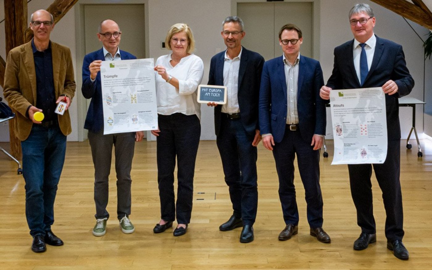 Zusammen mit den Forderungen an ihre Adresse bekommen die Bundesräte Ignazio Cassis und Guy Parmelin sowie SBV-Präsident Markus Ritter von der Igas ein Geschenk: Eine Jasstafel mit der Botschaft «Mit Europa am Tisch» samt Karten, Stift und Schwämmchen – «um Fehler zu radieren», bemerkte der Igas-Geschäftsführer.