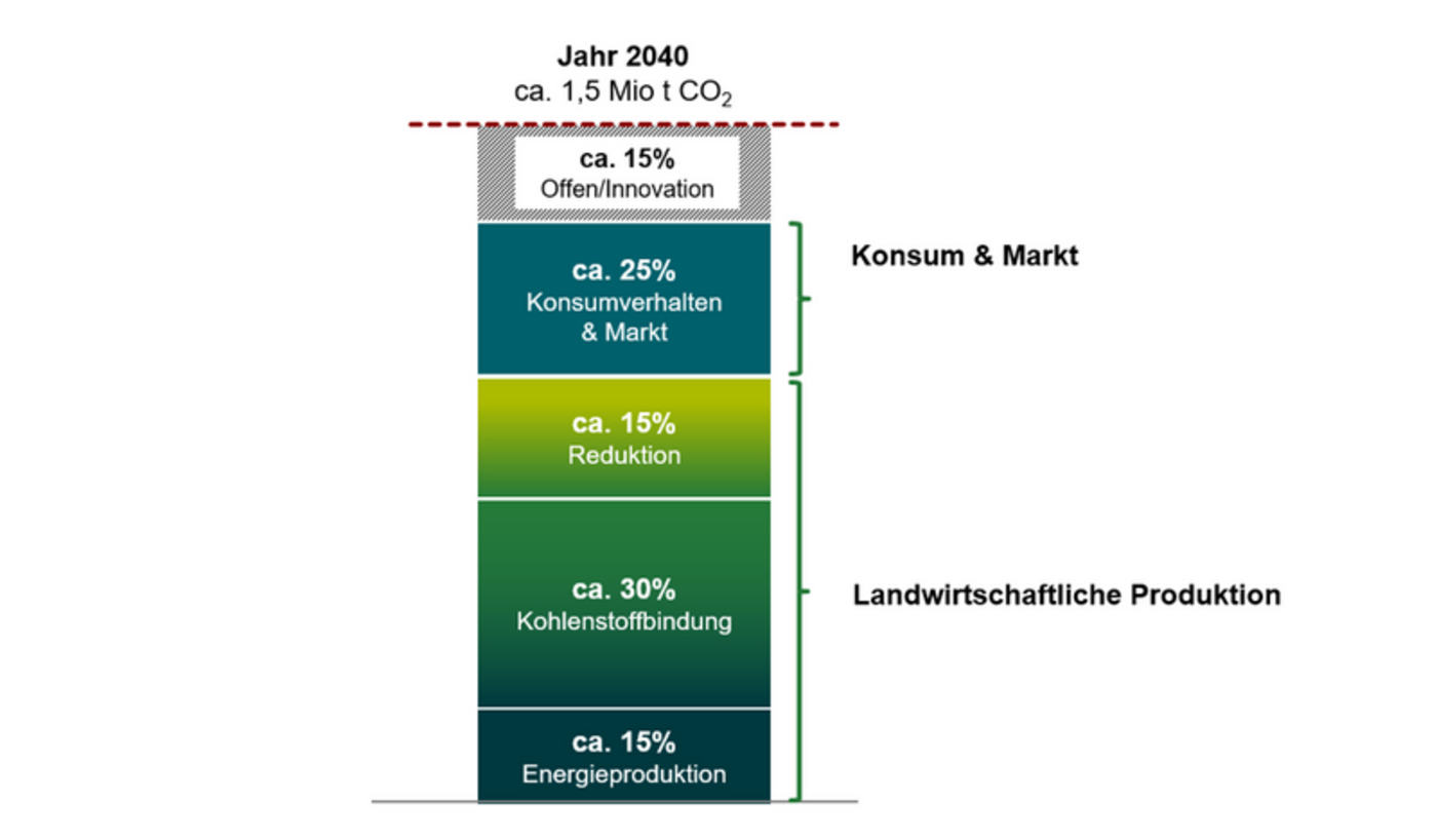 Das FiBL setzte Netto-Null bis 2040 für die Studie als Zielmarke. Die Landwirtschaft selbst sei in der Lage, die Treibhausgas-Emissionen um rund 60 Prozent zu senken. Dies einerseits zu 15 Prozent durch Reduktion, z. B. über stickstoffarme Fütterung, Gülleansäuerung oder eine bessere Abstimmung von N-Angebot und -Bedarf im Pflanzenbau. Andererseits haben die Forschenden errechnet, dass 15 Prozent der Emissionen durch die Produktion erneuerbarer Energie wie Solarstrom reduziert werden könnten. Die restlichen 30 Prozent sollen als organischer Bodenkohlenstoff, Pflanzenkohle oder dank Agroforst dauerhaft gespeichert werden.