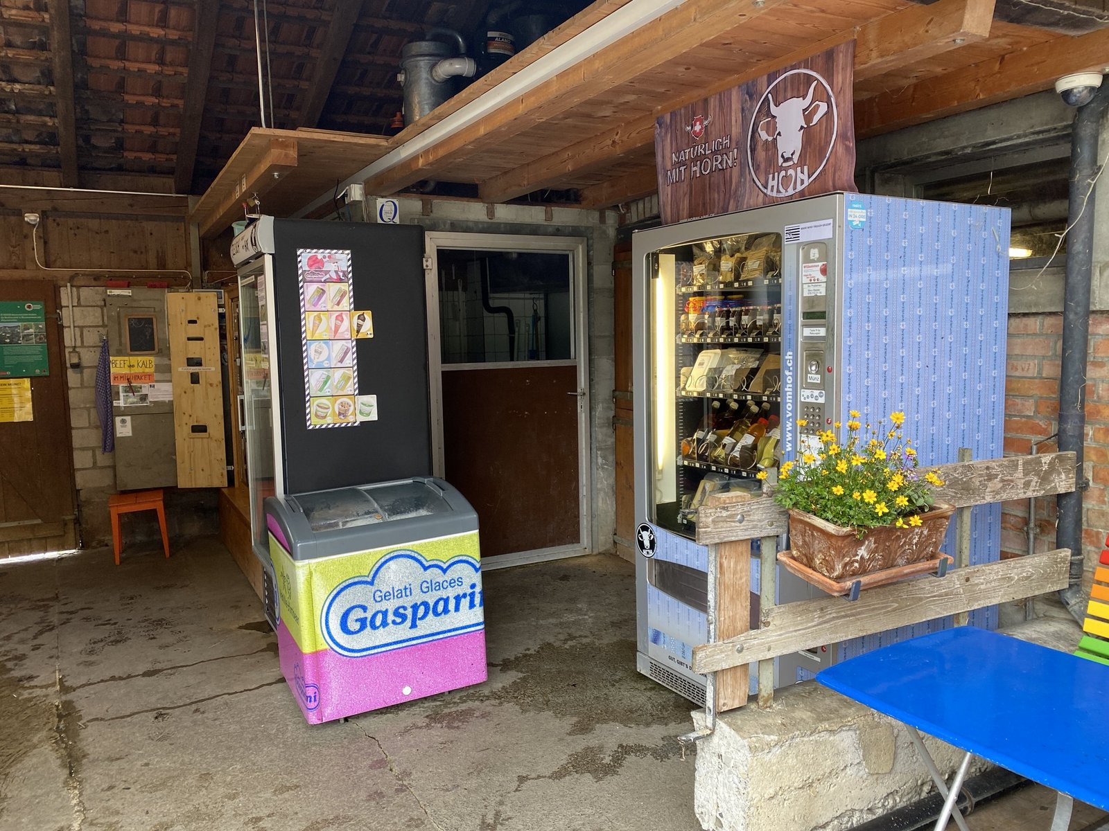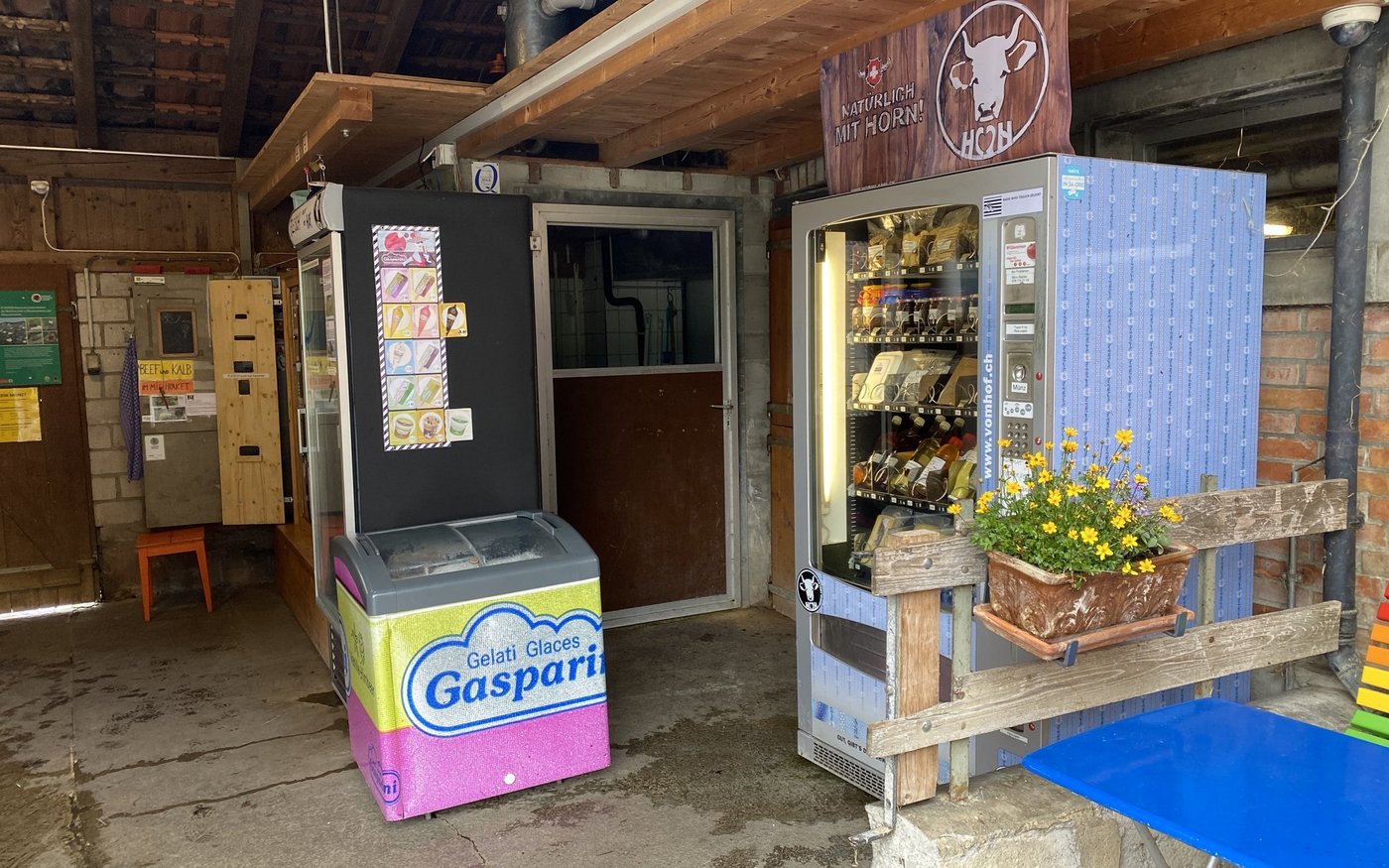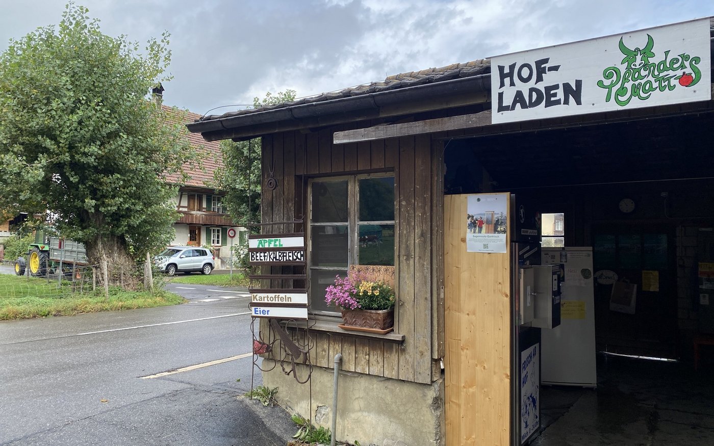 Die Rechnung der Pfandersmatt geht nicht zuletzt dank der Direktvermarktung auf. Im Hofladen werden Fleisch und Frischmilch vom Betrieb verkauft, genau wie Tafelobst von den zahlreichen Hochstammbäumen.