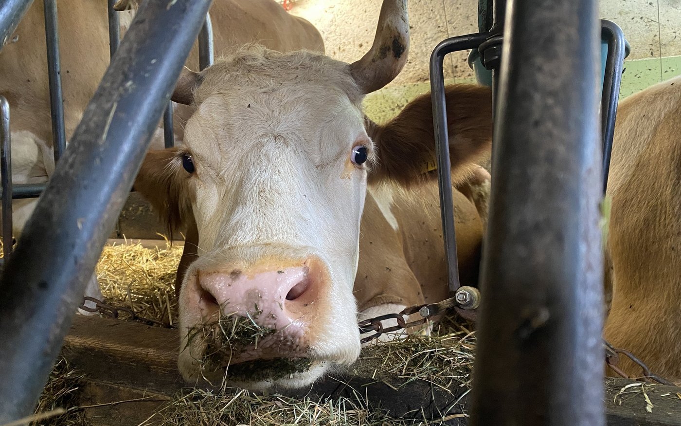 Das Signet der Pfandersmatt im bernischen Burgistein ziert der Kopf einer gehörnten Kuh, der Hofladen und diverse Fahrzeuge tragen das Logo des Hornkuh-Labels. Trotzdem, Hörner sind für das Betriebsleiterpaar Bänz Stalder und Mirjam Walde weder ein Politikum noch ein Alleinstellungsmerkmal: «Unsere Kühe haben Hörner, weil wir Freude daran haben», erklärt Walde schlicht. Den Umgang damit sind sie sich gewohnt. Man müsse sich aber immer bewusst sein, dass die Hörner da sind – sonst könne es gefährliche Situationen geben.