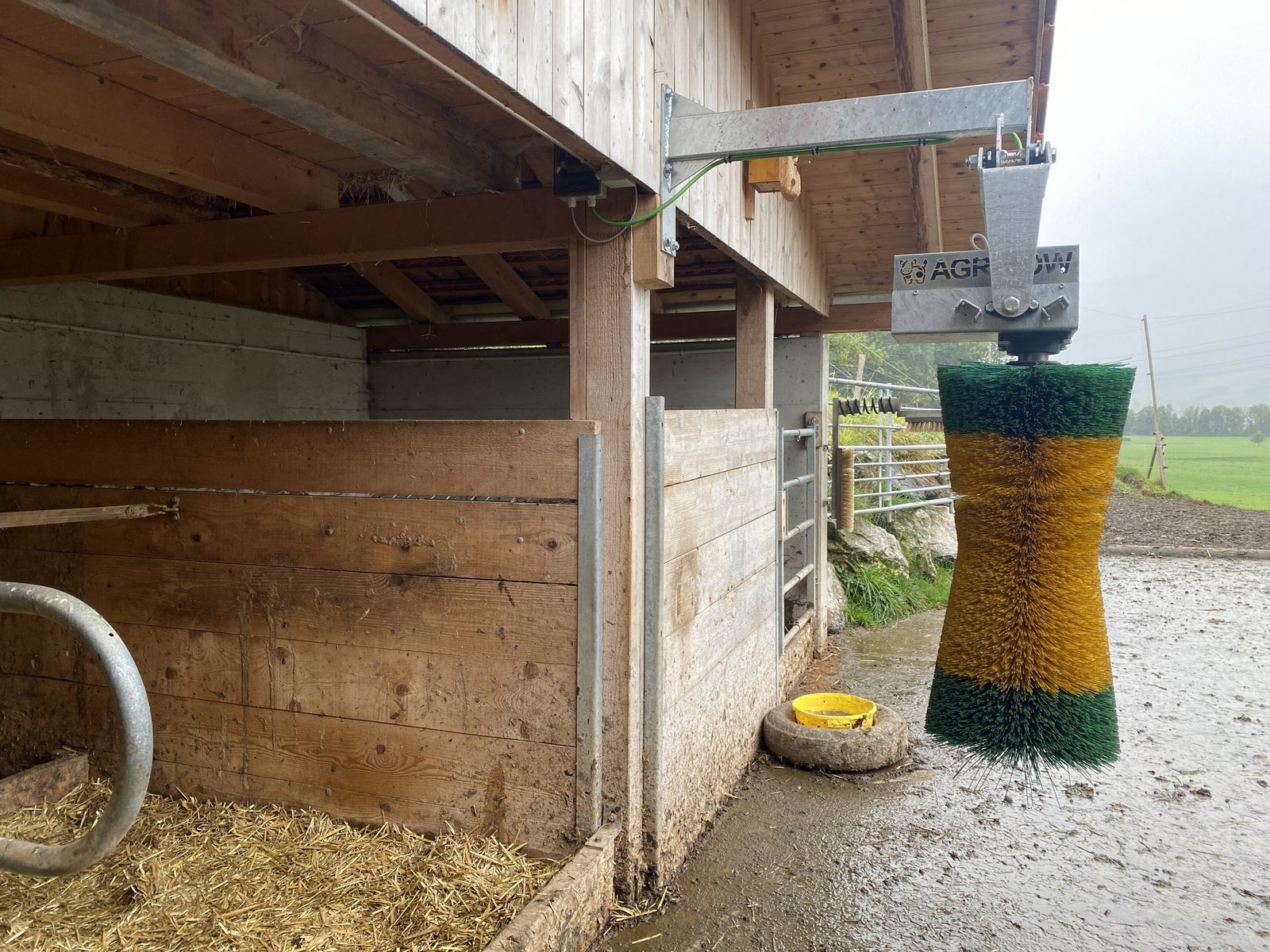 Ausserdem handeln Stalder und Walde kaum mit Tieren. Ihre gemischte Herde mit Swiss Fleckvieh, Simmentalern, Braunvieh, einigen Kreuzungen und einem Limousinstier stammt grösstenteils aus eigener Zucht. «So kennen wir die Tiere von klein auf», sagt Mirjam Walde, «wir behandeln sie mit Respekt – das kommt zurück.» Sie könne von Anfang an klar machen, dass Menschen keine Kratzbäume sind. Dafür stehen Bürsten zur Verfügung, was auch zur Ruhe in der Herde beitrage. Genau wie der heute zweijährige Muni: «Dank ihm gibt es weniger Streit unter den Kühen», so Walde.