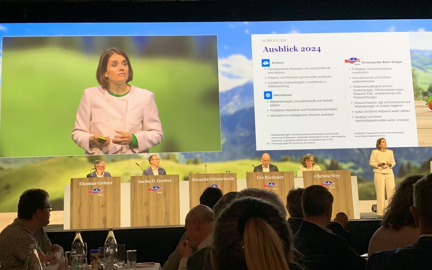 CEO Ricarda Demarmels wies auf das weiterhin schwierige Käsegeschäft hin, Emmi glaube aber an das Potenzial von Schweizer Käse und investiere weiterhin dafür. Für das laufende Jahr wird eine ähnliche Gewinnmarge von 5 bis 5.5 Prozent des Umsatzes erwartet.