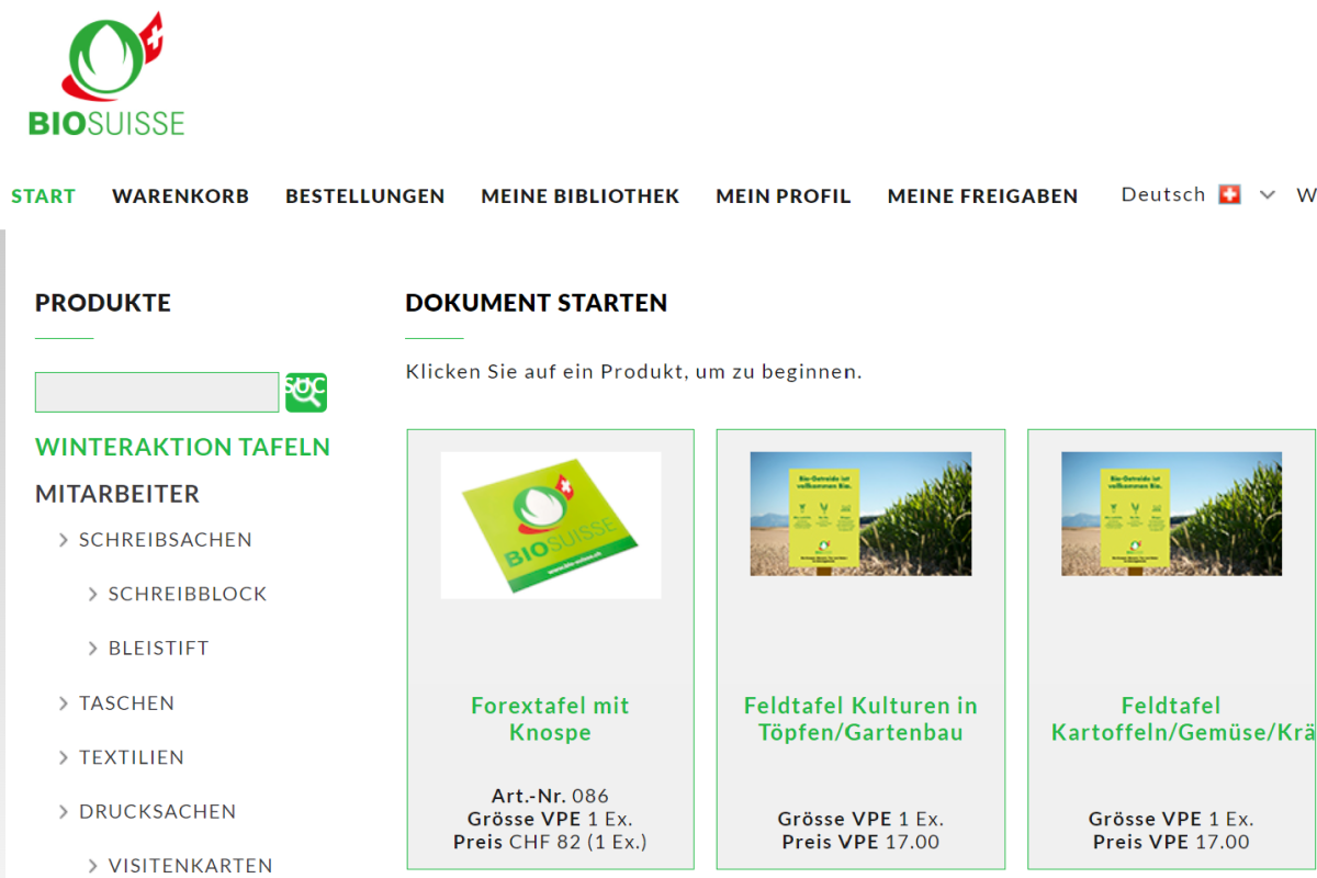 Die Tafeln sind im Bio Suisse Shop während der Aktion in der obersten Rubrik «Winteraktion Tafeln» zu finden (auf der Startseite und nicht unter Tafeln, Benutzername: Betriebsnummer).