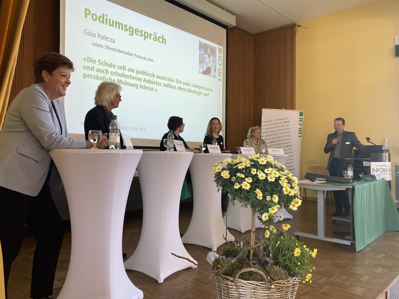Beim Podiumsgespräch mit Lehrerinnen, Bildungsfachleuten und Verbandsvertreter-innen, moderiert von Adrian Krebs, Chefredaktor der BauernZeitung, wurde das Thema vertieft.
