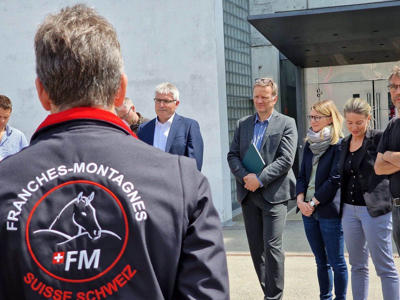 Für BLW-Direktor Christian Hofer ist klar, es brauche eine Gleichbehandlung. Es gehe um Erhaltungszucht. Und hier sei der Freiberger längst nicht alleine. Es gäbe viele ursprüngliche Rassen, deren Zahlen klar darauf hindeuten, dass sie bedroht seien. «Ich kann keine Versprechungen machen», sagte Hofer, erklärte aber, die Anliegen erkannt zu haben. «Eines kann ich Ihnen versichern, wir haben das gleiche Ziel und dieses ist, gefährdete Schweizer Rassen zu erhalten.» Der Beitrag des Bundes sei nur einer von vielen nötigen Puzzlesteinen, dass das schliesslich auch gelingen möge. «Es braucht Leidenschaft und Herzblut, um eine Rasse zu erhalten», so der BLW-Direktor. Er attestierte der angereisten Delegation, dass genau das beim Betrachten dieses Bildes mit den Freibergerpferden vor dem BLW, deutlich sichtbar ist.