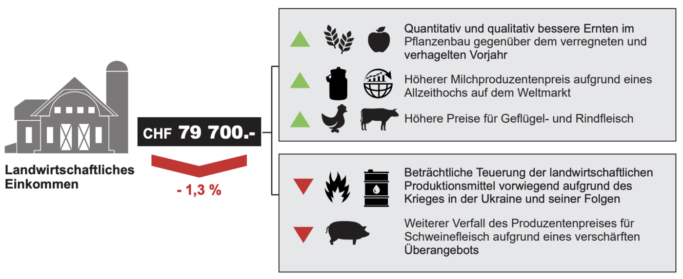 Auch der Landwirtschaftssektor blieb aufgrund der steigenden Inflation nicht von einer beträchtlichen Teuerung auf Aufwandseite verschont. Weiter hätten auch der Ukraine-Krieg und seine Folgen zu einem bedeutenden Preisanstieg der Energieträger und Mineraldünger geführt. Durch die gestiegene Anzahl an Angestellten hätten zudem die Personalaufwände zugenommen.