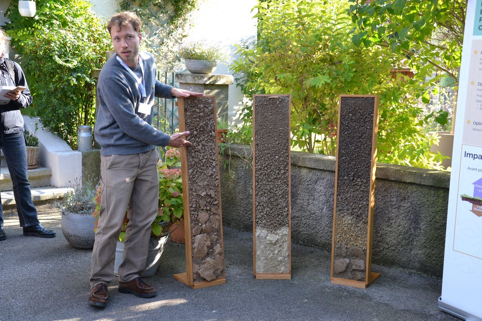 Die Gastgeber Quentin und Pascal Francillon aus Daillens VD präsentierten eine Verbesserung ihrer Klimabilanz um satte 71 Prozent. Francillons führen einen 100-ha-Betrieb mit Getreide, Körnermais, Ölsaaten, Zuckerrüben und Rindfleischproduktion (21 GVE). Auch sie setzen auf reduzierte Bodenbearbeitung (z. B. Streifenfrässaat statt Pflug bei Mais, Grubber für Zuckerrüben). Zusätzlich arbeiten sie mit mehr organischem Dünger, namentlich Kompost von der Gemeinde (700 m3/Jahr) und Schweinemist sowie -gülle (90 m3/Jahr bzw. 245 m3/Jahr) aus der Nachbarschaft. Damit liessen sich die Menge Mineraldünger um 1150 Einheiten reduzieren. GPS für den Traktor und die kombinierte Saat von Gründüngungen und Zwischenfrüchten optimieren den Energieverbrauch des Betriebs.