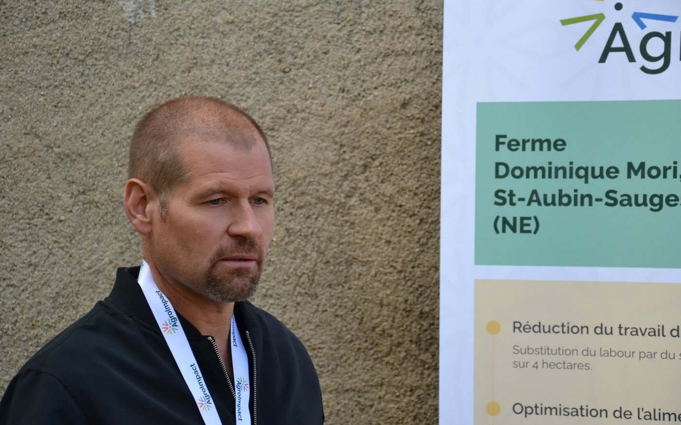 Reduzierte Bodenbearbeitung (Streifensaat von Mais), weniger Proteinfutter-Zukauf (durch eigenen Leguminosenanbau) sind Punkte im Massnahmenplan des Betriebs von Dominique Mori in St-Aubin-Sauges NE. Er bewirtschaftet 58 ha, produziert Getreide, Zuckerrüben und Industriemilch (74 GVE). Die Reduktion des Erstkalbealters von 27 auf 25 Monate und die verstärkte Belegung mit Fleischrassen tragen weiter zur berechneten Verbesserung der Klimabilanz um 9 Prozent bei. Zudem kompostiert Mori jährlich 50 t Rindermist, um die Nährstoffflüsse des Betriebs zu optimieren.