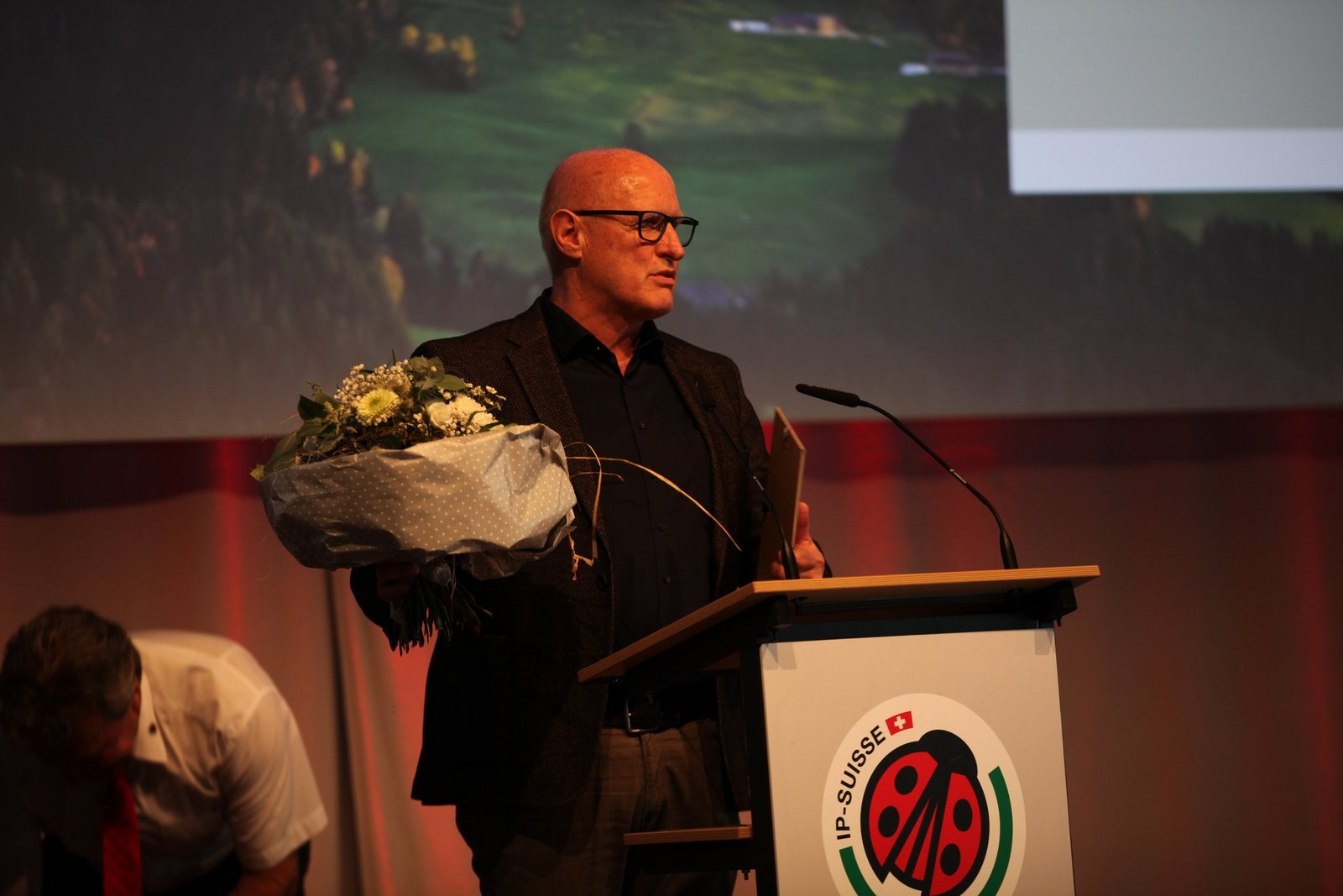 Der gebürtige Jurassier hatte seine erste DV als Geschäftsführer der IP-Suisse zu bestreiten. Obschon er geplant hatte, zumindest einen Teil der Versammlung in seiner Muttersprache abzuhalten, blieb er beim Deutsch und bewies dort seine Sattelfestigkeit.