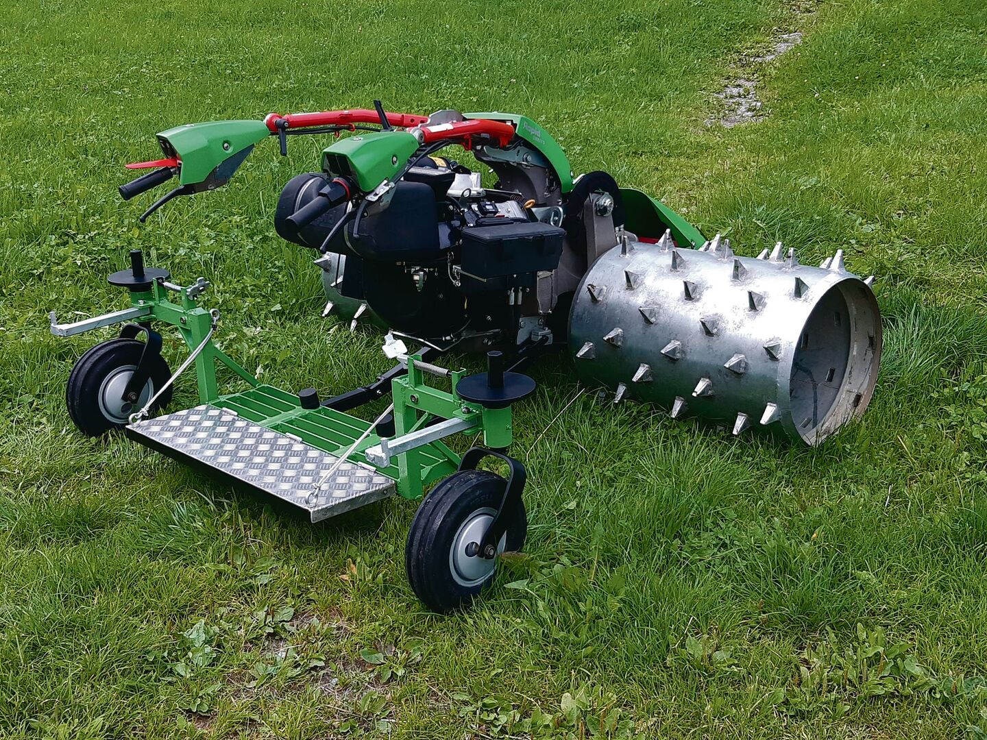 Dabei habe auch geholfen, dass er für seinen Mäher bereits über extra breite Stachelwalzen verfüge, die er sich als Sonderanfertigung hat herstellen lassen. Diese Breite sei Voraussetzung für die nötige Stabilität am Hang bei der Arbeit mit dem Stehanhänger.