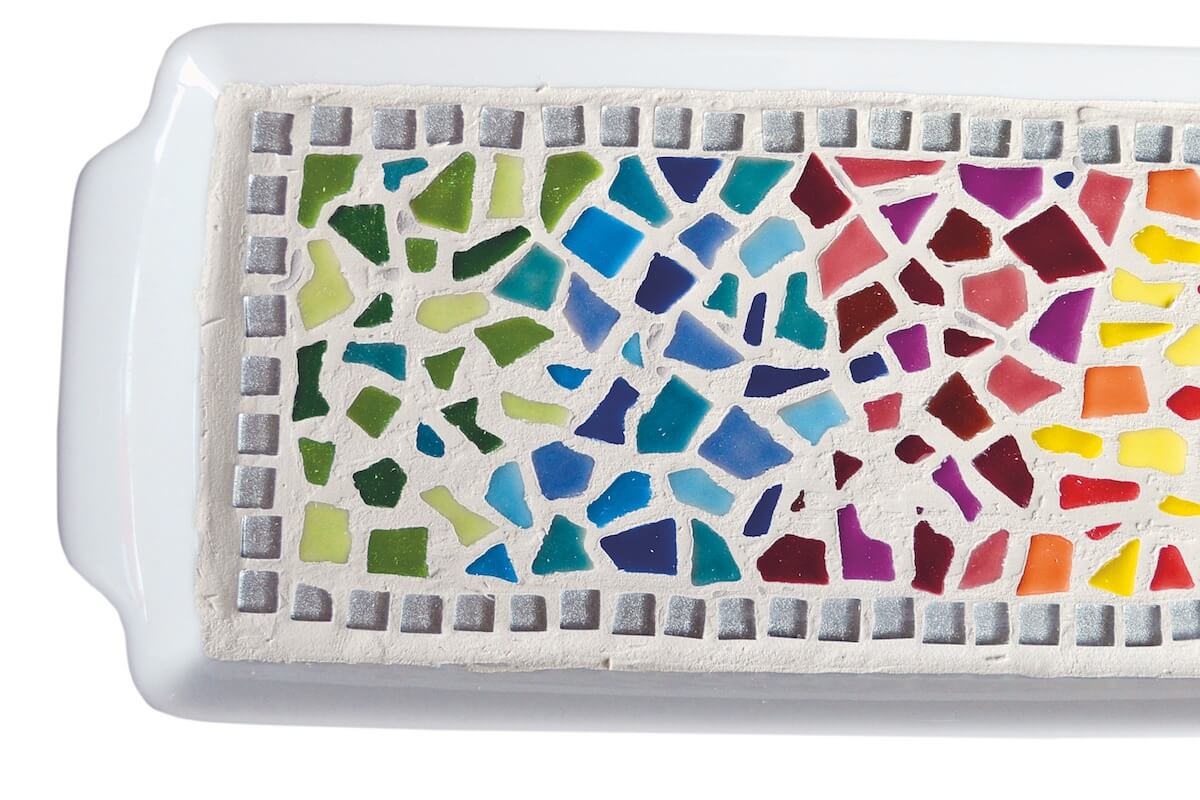 Willst du dein Mosaik später auch nutzen (zum Beispiel auf einem Teller), ist es empfehlenswert nach dem Trocknen eine Fugenmasse aufzutragen und die Zwischenräume auszufugen. Geh dabei nach Anleitung des Herstellers vor.