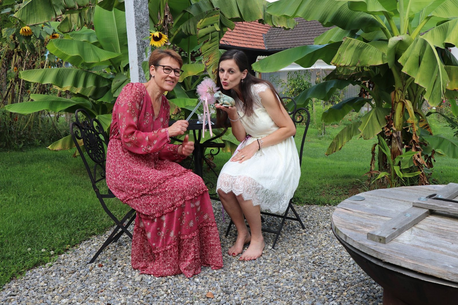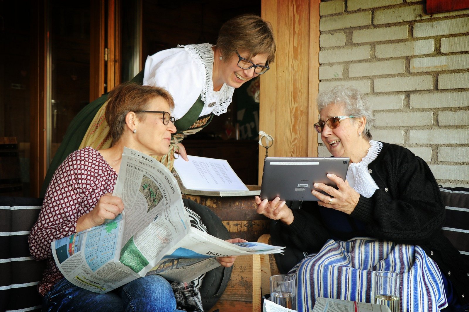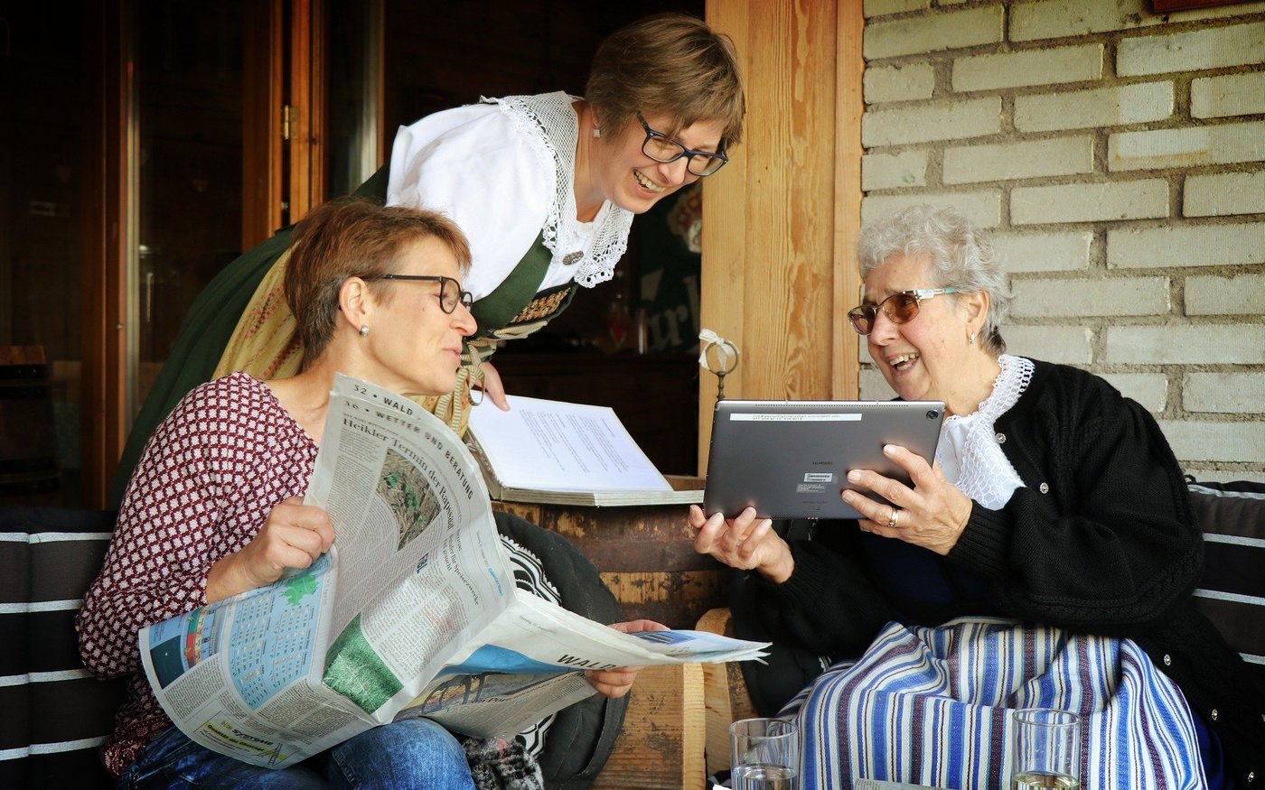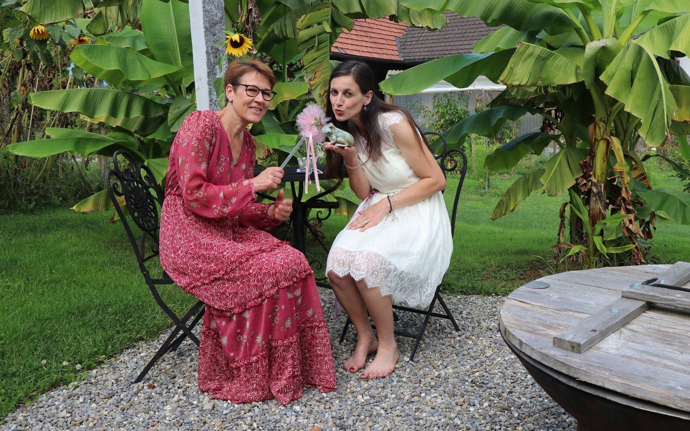 Frauen in Trachten tragen Gläser mit Eingemachtem herbei, eine riesige Torte und reichlich weitere Verpflegung. So weit, so gewohnt. Aber dann setzt sich Lotti Baumann, die Präsidentin des Aargauischen Landfrauenverbands (ALVF), im Weihnachtsmannkostüm in einen Sessel. Vier Trachtenfrauen liegen schweizerkreuzförmig im Gras. Und Maria, die ein hübsches Blumenkränzchen im grauen Haar trägt, setzt sich aufs Motorrad. …