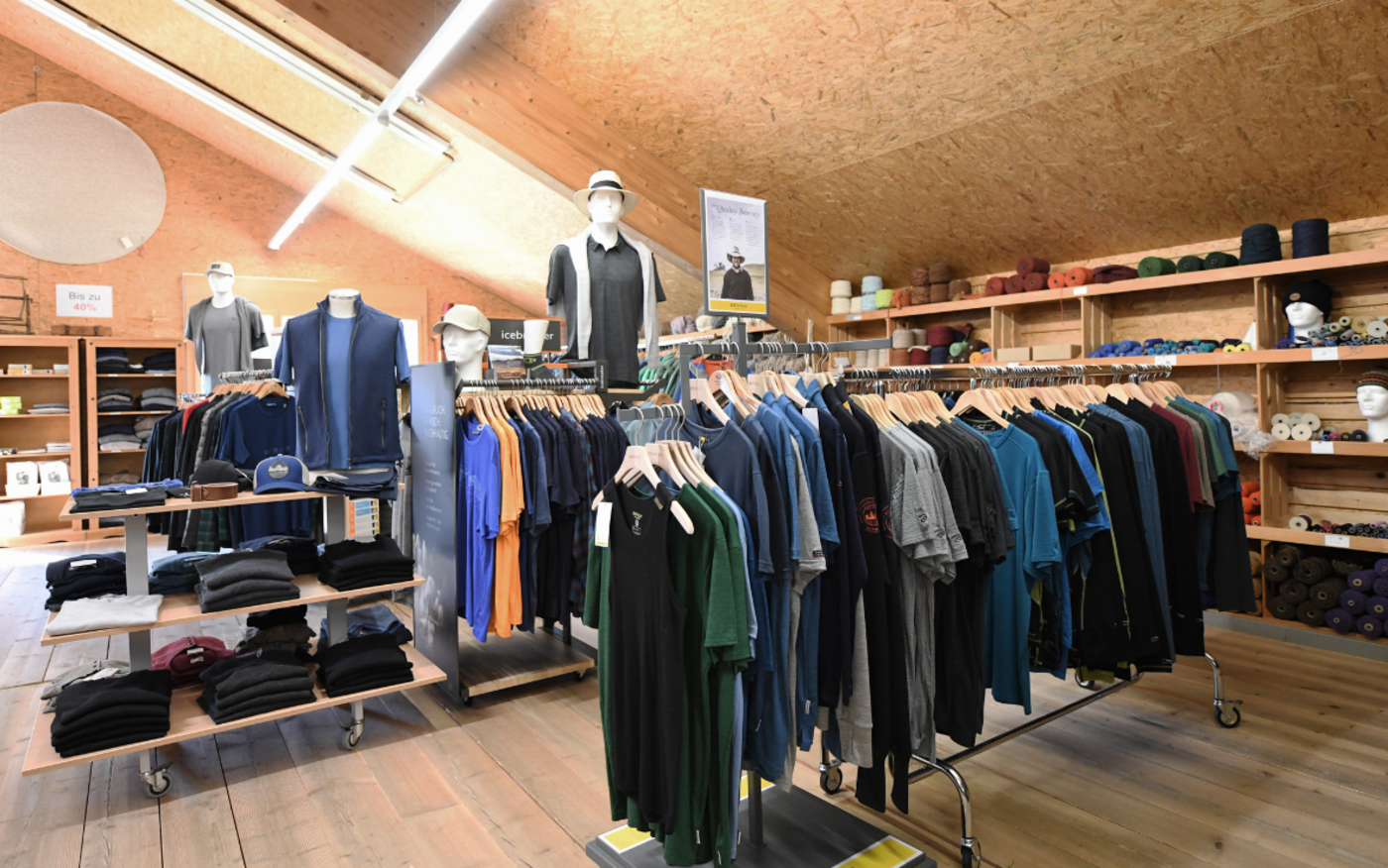 Das «Wollparadies» bietet auf über 1.000 m² eine Vielzahl an Produkten rund um Wolle – vom Handwerksbedarf über Schlaf- bis hin zu Bekleidungsartikeln. Die Artikel sind ebenfalls über den Online-Shop erhältlich.