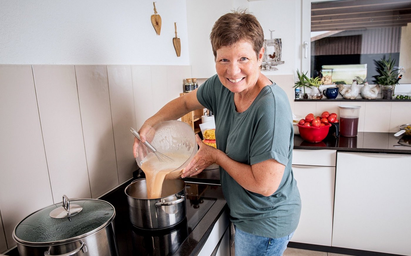 Es riecht verlockend in der Stube von Agnes Hügli auf dem Gehrenhof oberhalb Brislach. Soeben hat sie den Tisch abgeräumt. Die Männer – Mann und Sohn – sind auf dem Sprung, es geht wieder aufs Feld. Auf den ersten Blick ist die Rollenverteilung bei Hüglis traditionell: Die Männer draussen mit den Maschinen, sie in der Küche und um den Hof. [IMG 1-2] Doch wenn Agnes Hügli von ihren Projekten spricht – den Kürbissen,…