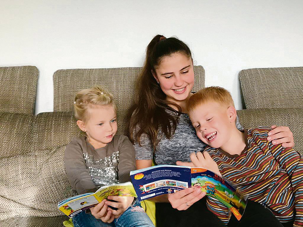 Eliane hat im Haushalt Stammaufgaben. Dazu kommen Arbeiten, die je nach Jahreszeit und Arbeitsanfall variieren. Im Herbst hilft sie auch mal beim Äpfel Auflesen oder Einmachen der Früchte. «Sehr viel Zeit verbringe ich mit der Kinderbetreuung», das sei eigentlich der grösste Teil ihrer Arbeit. Sie schaut zu den drei Kindern von Familie Vogel. «Einmal in der Woche bringe ich die Kinder mit Hilfe ins Bett. Mal alle und manchmal nur eines», so lerne sie auch diese Aufgabe und wisse, wie das gehe. Die junge Praktikantin ist gerne draussen unterwegs. Sie geht mit den Kindern viel nach draussen. Manchmal hilft sie auch auf dem Betrieb etwas oder im Garten. Mit den Tieren selber habe sie insofern zu tun, dass sie mit den Kindern in den Stall rübergehe, um Kühe zu streicheln und zu bestaunen.