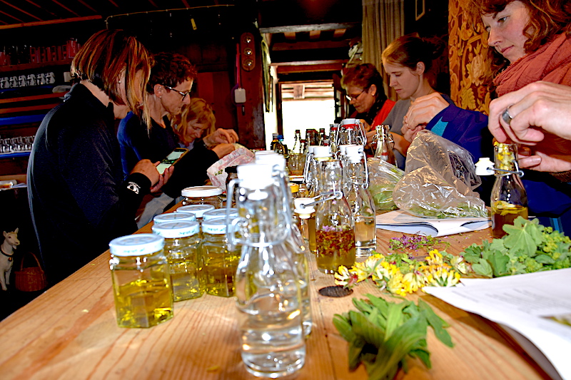 Bevor es losgeht, reicht Annelise Moser eine kleine Räucherschale im Kreis herum. Moser ist Drogistin, Naturheil- und Traumatherapeutin. Mit einer Gruppe Frauen, die meisten Bäuerinnen, will sie vom Schwarzsee FR zur Alp Brecca hochsteigen und dort Kräutersalben, -öle und Tinkturen herstellen. Das Räuchern dient als Vorbereitung darauf. Es ist ein alter Brauch zum Reinigen der Aura, und er symbolisiert die Verbindung…