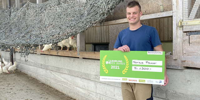 Mit Markus Fischer hat am 14. Juli 2022 auch unser «Lehrling des Jahres 2021» seine Ausbildungszeit beendet. Er hat im vergangenen Jahr die Auszeichnung der BauernZeitung gewonnen, bei der der Nachwuchs der Schweizer Landwirtschaft im Zentrum steht und am Ende die Leserschaft aus 10 Finalist(innen) den «Lehrling des Jahres» kürt. Der 21-Jährige hat mit seiner überlegten Art und seiner Freude für seinen Randberuf die Leserinnen und Leser für sich gewinnen können.
