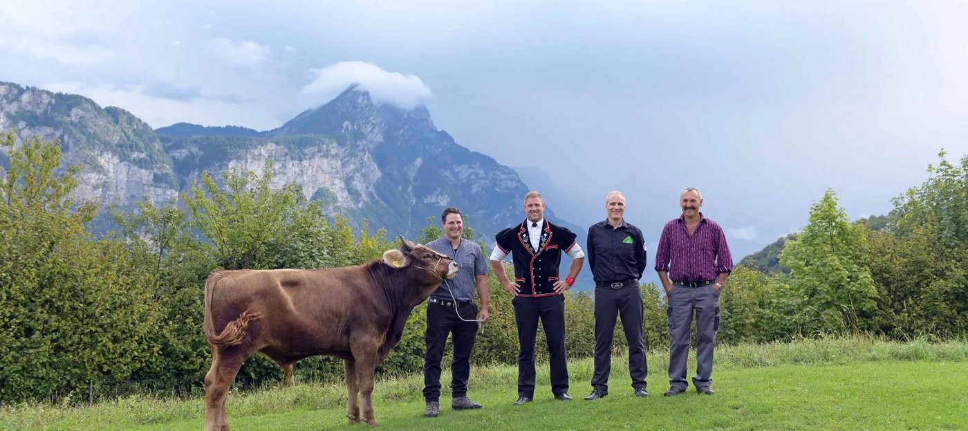 Beim Anschwingen präsentierte man den Siegermuni des nächsten ESAF. Das noch namenlose Tier kam im letzten November zur Welt und wiege heute 370 kg. Wie sein Halter Bert Horner aus Ennenda zitiert wird, soll er in drei Jahren eine Tonne auf die Waage bringen. Bis dahin dürften auch die Hörner des Original-Braunvieh-Stiers ein gutes Stück gewachsen sein. «Er ist ein ganz feiner Kerl mit einwandfreiem Charakter», versichert Horner. Im Moment stehe der künftige Siegermuni noch auf der Alp, werde aber schon kundig auf seine bevorstehende Aufgabe vorbereitet.