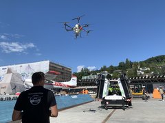 Die Agrarpiloten liessen kleine und grosse Drohnen fliegen, wie sie bereits in praktischem Einsatz sind. So etwa zur Platzierung von Trichogrammen, den Nützling gegen den Maiszünsler. Der «Traktor unter den Drohnen» ist mit 50 kg Gesamtgewicht deutlich grösser und kann mit einem 20 Liter Tank ausgestattet werden. Damit kann er zum Spritzen in Kartoffel-, Mais- oder Kürbiskulturen, oder auch für Untersaaten oder zum Streuen von Schneckenkörnern eingesetzt werden. Mit dem Fluggefährt können Behandlungen in Kulturen erfolgen, die bei nassem Wetter sonst nicht möglich wären.