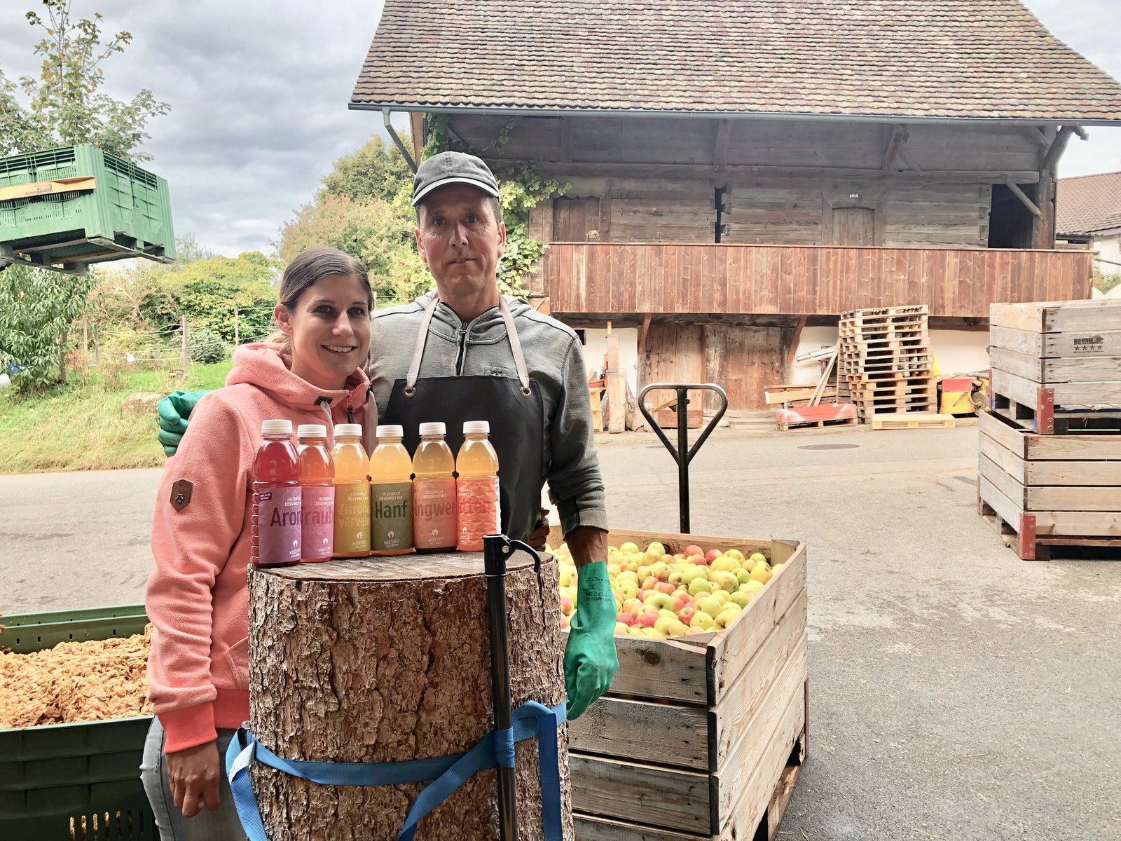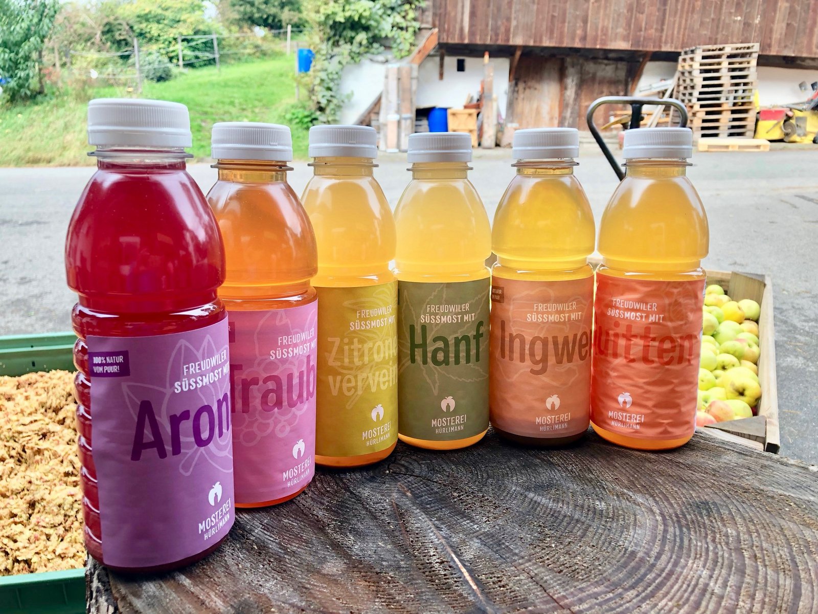 Das Mostobst, das auf dem Hofplatz der Mosterei Hürlimann im zürcherischen Freudwil auf seine Verarbeitung wartet, ist bunt, verschieden gross und im Geschmack sehr unterschiedlich. Doch nicht nur das Rohprodukt für den Süssmost fällt durch seine Verschiedenartigkeit auf, auch die Etiketten auf den Halbliter-Pet-Flaschen sind farbenfroh. Wie die Flaschen so nebeneinander stehen, erinnern sie an einen Regenbogen. [I…
