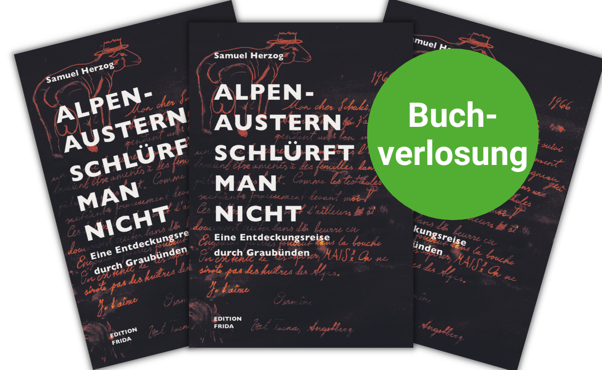 «Alpenaustern schlürft man nicht – Eine Entdeckungsreise durch Graubünden», Samuel Herzog, Edition Frida, 2022. Paperback, 128 Seiten. Fr. 28.–.
