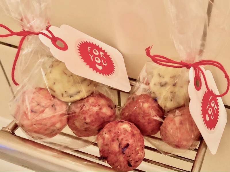 - Die Masse zu runden Kugeln kneten. Hinweis: Die Kugeln mindestens eine Stunde stehen lassen, noch besser wäre über Nacht.