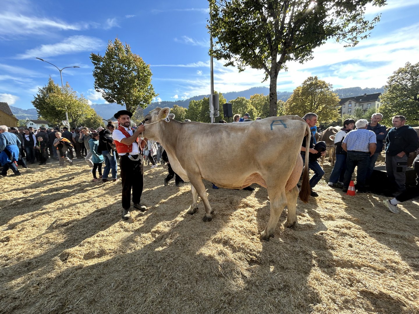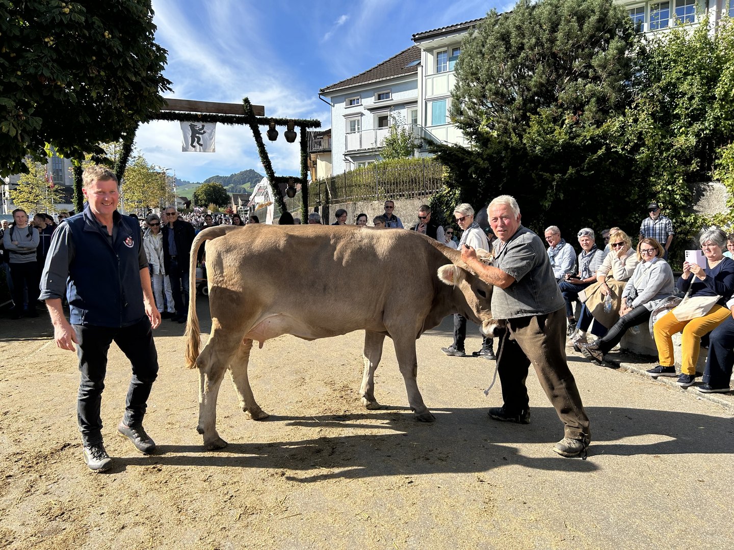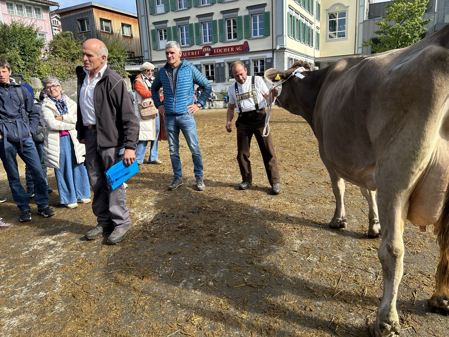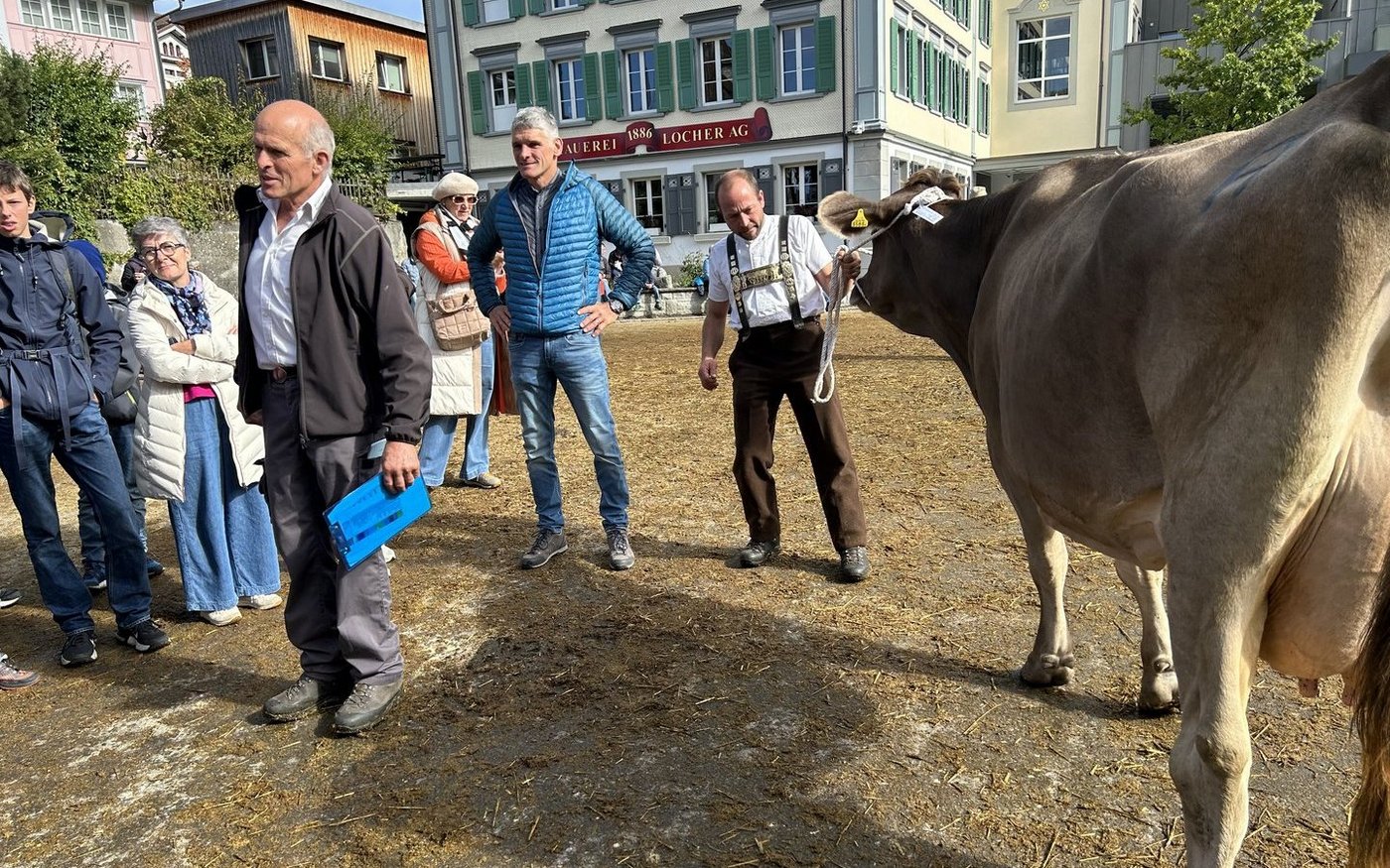 Während der vormittäglichen Rangierung hatten sich der Innerrhöder Bauernpräsident Walter Mock und der Schauexperte und Mitorganisator Markus Dörig um die Besucher(innen) gekümmert. Sie sorgten dafür, dass die Viehschau nicht nur Begeisterung und Emotionen weckte, sondern sprachen auch über die Bedeutung der Landwirtschaft im Kanton Appenzell, erklärten Traditionen, den Ablauf der Viehschau und wie die Experten die Kühe beurteilen. So bauten Mock und Dörig auch eine Brücke zwischen Landwirtschaft und nicht-bäuerlicher Bevölkerung.