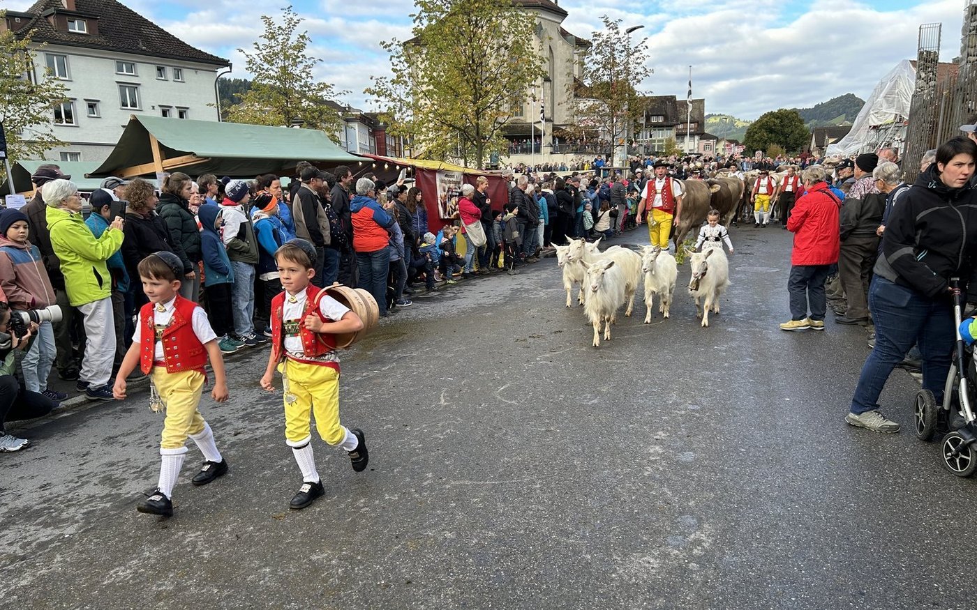 Voran gingen drei Kühe, die das Senntum trugen, dann folgten die Sennen mit den gelben Hosen, die mit Jodelliedern die unzähligen Besucher(innen) am Strassenrand erfreuten. Zuhinterst folgte der Züchter traditionsgemäss gekleidet mit brauner Hose und einem weissen Hemd. Auch Appenzeller Geissen waren dabei, begleitet von Geissenmeitli und Geissenbuben.