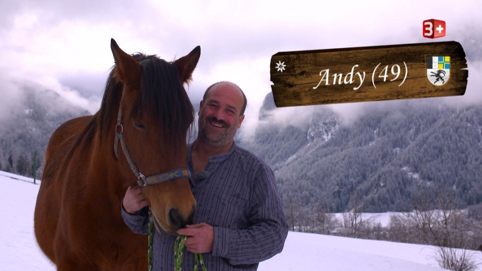 Andy aus dem Bündnerland hat drei Kinder. Er versorgt 14 Mutterkühe, einige Kälbchen, vier Pferde und zwei Ponys auf seinem Hof. Der 49-jährige Single besitzt eine Alphütte auf einem acht Kilometer entfernten Maiensäss inklusive Übernachtungsmöglichkeit. Für romantische Stunden zu zweit ist laut Medienmitteilung also gesorgt, denn die Hütte auf der Alp verfüge über keinen Stromanschluss. Andy wird als weltoffen beschreiben, engagiert sich im Gemeindevorstand und träumt von einem Wellness-Wochenende mit seiner Traumfrau.