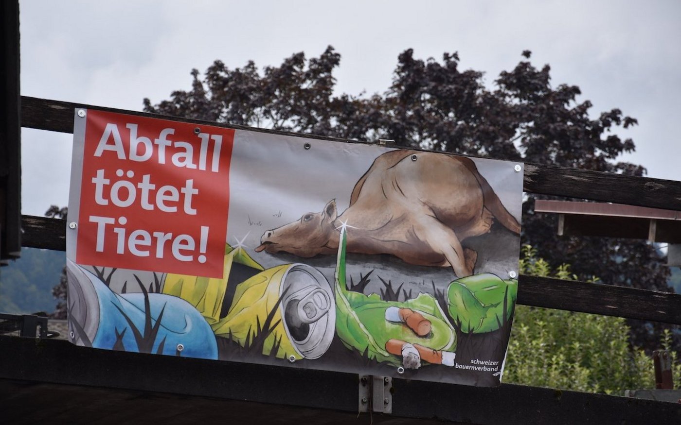 Idealerweise gelangt der Abfall gar nicht in die Umwelt – sprich, Verpackungen sollten nicht einfach aus dem Autofenster geworfen werden. «Vor genau 10 Jahren haben der SBV und die IGSU die erste Anti-Littering-Sensibilisierungskampagne gestartet», erzählt Martin Rufer. Die in diesem Jahr lancierte, neue Kampagne schlägt mit dem Slogan «Abfall tötet» und dem stilisierten Bild einer toten Kuh einen schärfern Ton an als früher. Damals trugen die Plakate den Hinweis «Abfall macht mit krank» mit einer lebenden Kuh auf der Weide. Die Corona-Pandemie habe das Littering-Problem noch verstärkt und die neue Kampagne sei aufgrund vieler Rückmeldungen entstanden, so Rufer.