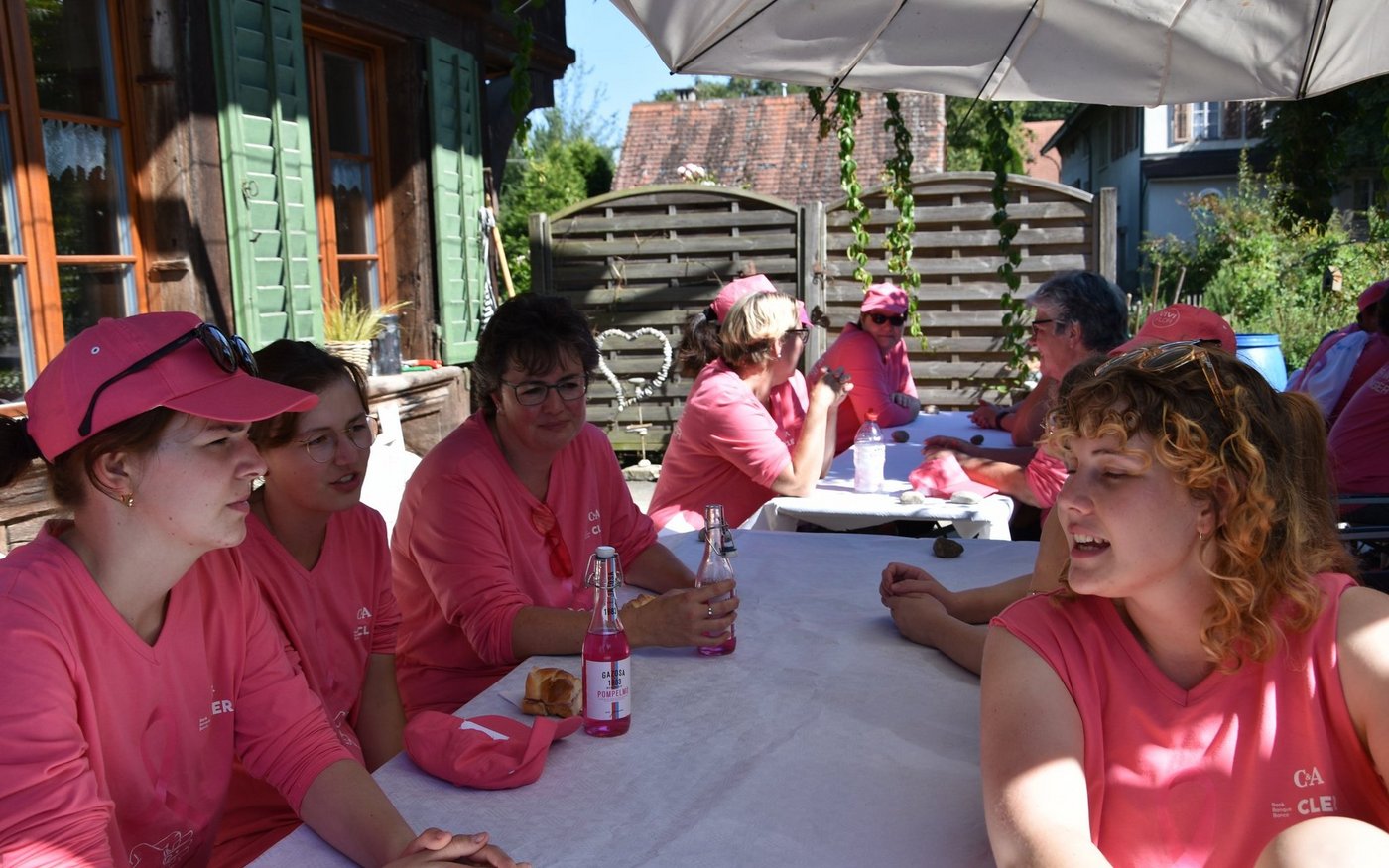 Pink Ribbon Schweiz setzt sich seit 2007 im Kampf gegen Brustkrebs ein. Seither ist die rosa Schleife als Symbol für Brustkrebs bei der Schweizer Bevölkerung bekannt. Diverse Sujets mit prominenten Schweizer Persönlichkeiten haben zudem sensibilisiert und dadurch auf die Früherkennung von Brustkrebs aufmerksam gemacht. Mit den Projekten will Pink Ribbon Schweiz das Leben von Frauen retten und den Betroffenen neuen Mut und viel Zuversicht schenken. Durch die Solidaritätsevents wurden in den letzten Jahren über zwei Millionen Schweizer Franken für wichtige Brustkrebsprojekte und die Forschung gesammelt. Die Landfrauen freuten sich nach dem fröhlichen Walk am gemütlichen Ausklang mit feinen Sandwich, pinkigen Getränken und feinen «Rosa-Schleifen-Spitzbuben». Die tolle Give-Away Taschen, mit praktischen und witzigen Produkten, wird die Landfrauen noch lange an den besonderen Spaziergang rund um Ersigen erinnern.