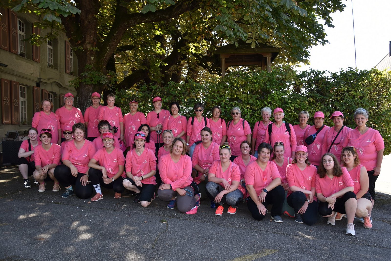 Die Landfrauen trafen sich bei der Präsidentin des verbands bernsicher Landfrauenvereine (VBL), Barbara Kunz, in Ersigen. «Wir sind sehr stolz, sind so viele Landfrauen aus allen Genrationen heute dabei» stellte Barbara Kunz fest. Schnell wurden die pinken Shirts, sowie lässigen Caps angezogen und nach dem Fototermin machte sich die fröhliche Gruppe auf den Weg. In diesem Jahr konnte die Strecke selbst gewählt werden. Darum entschied sich Barbara Kunz, den Teilnehmenden die Schönheiten rund um ihren Wohnort zu zeigen. Sie führte die fröhliche Schar an und entlang vom Bach ging es in Richtung auf den «Lobärg». Wer nicht so gut zu «Fuss» war wählte die kürzere Strecke und genoss schon bald wieder den Schattenplatz auf der Terrasse vor dem Bauernhaus. Herrlich war für die anderen die Aussicht vom «Lobärg», sogar das kleinste Teilnehmende im Kinderwagen wusste den Pink Ribbon Charity Walk zu schätzen.