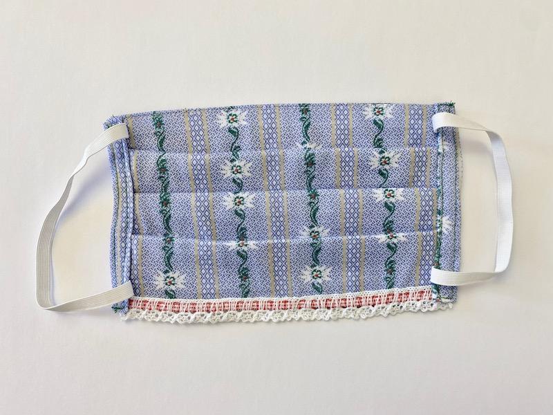 Tipp: Besonders hübsch ist Edelweiss-Stoff. - 2 Stück 5mm breites Gummiband, je zugeschnitten auf eine Länge von 22cm bis 25cm, je nach Grösse