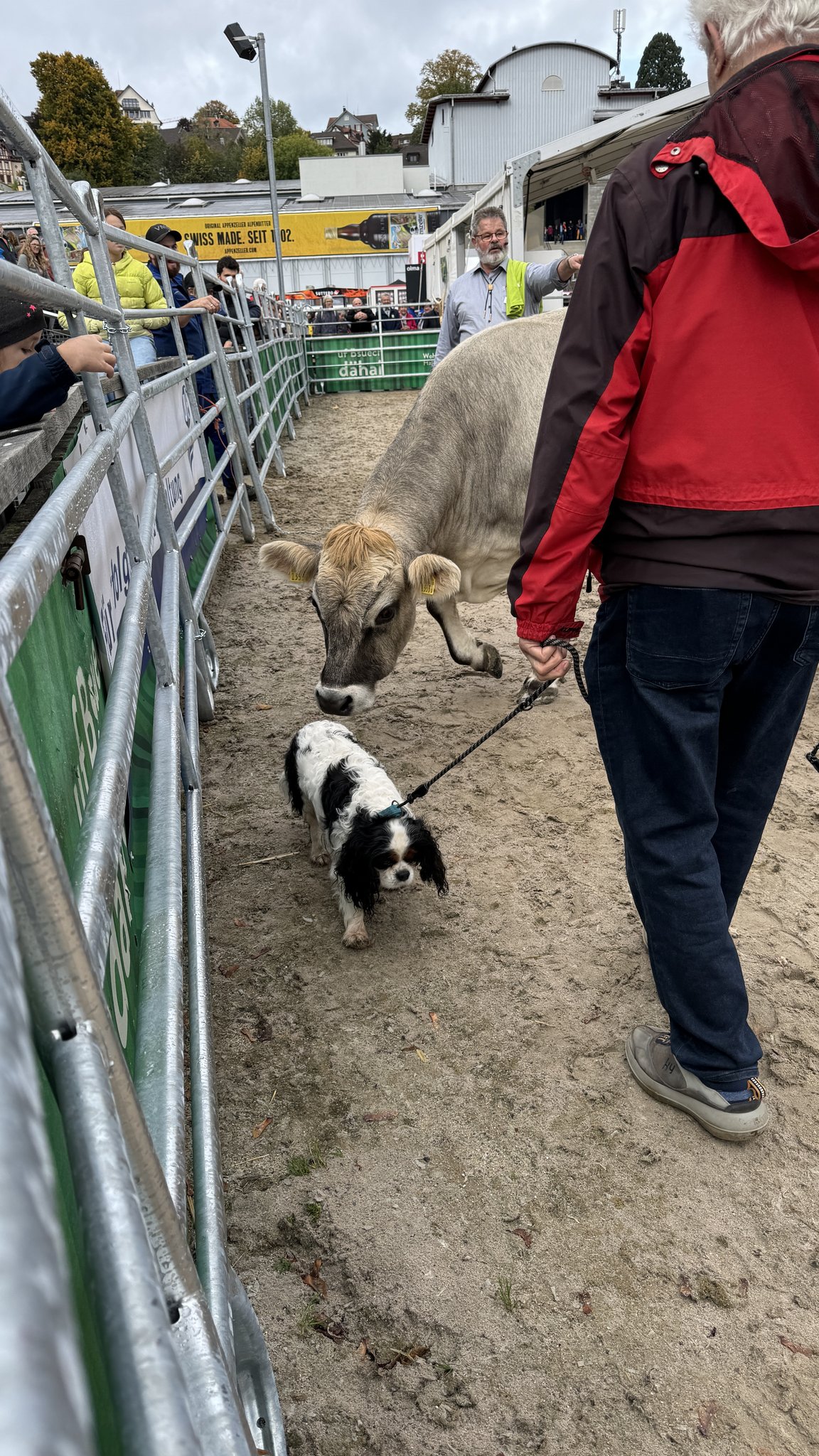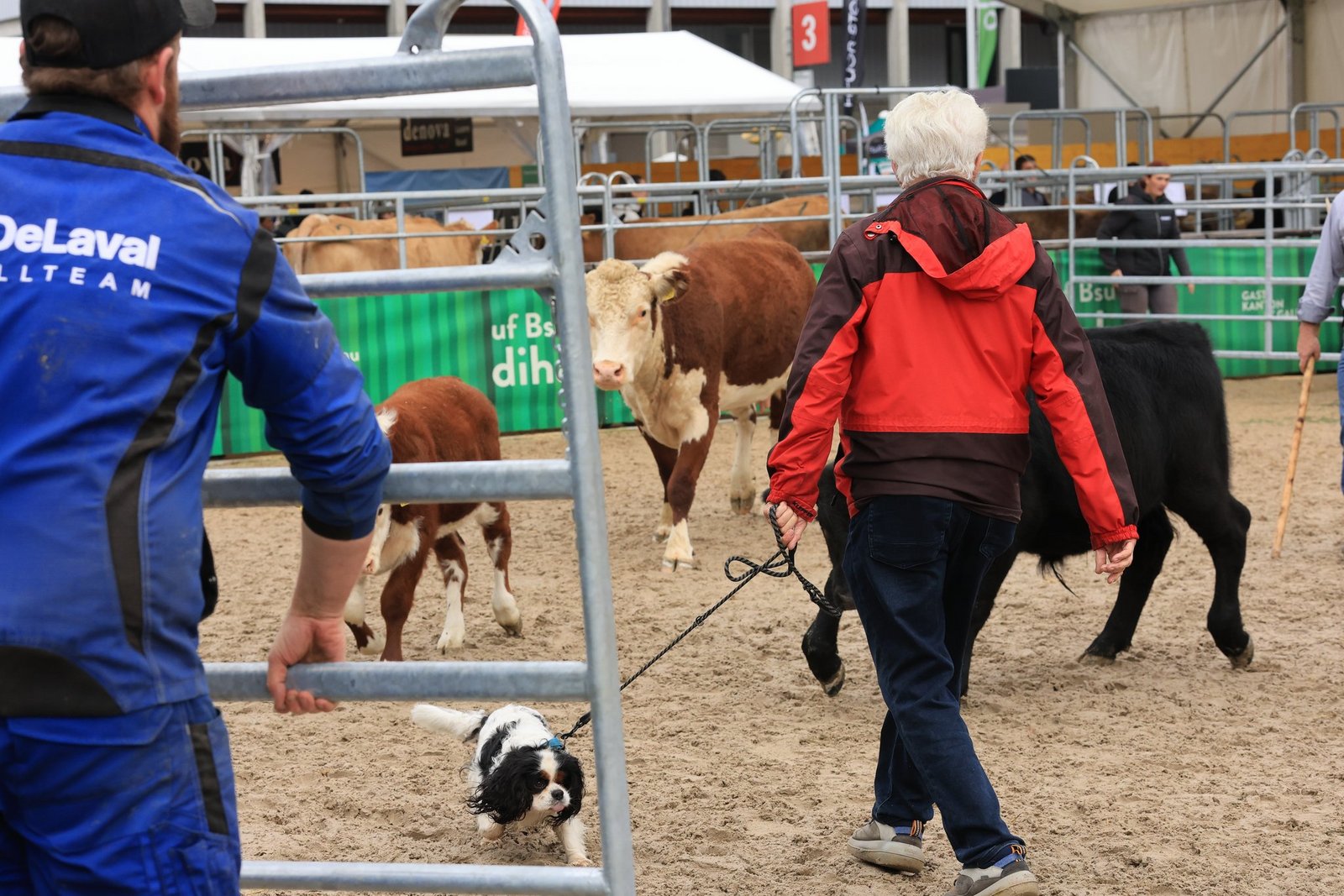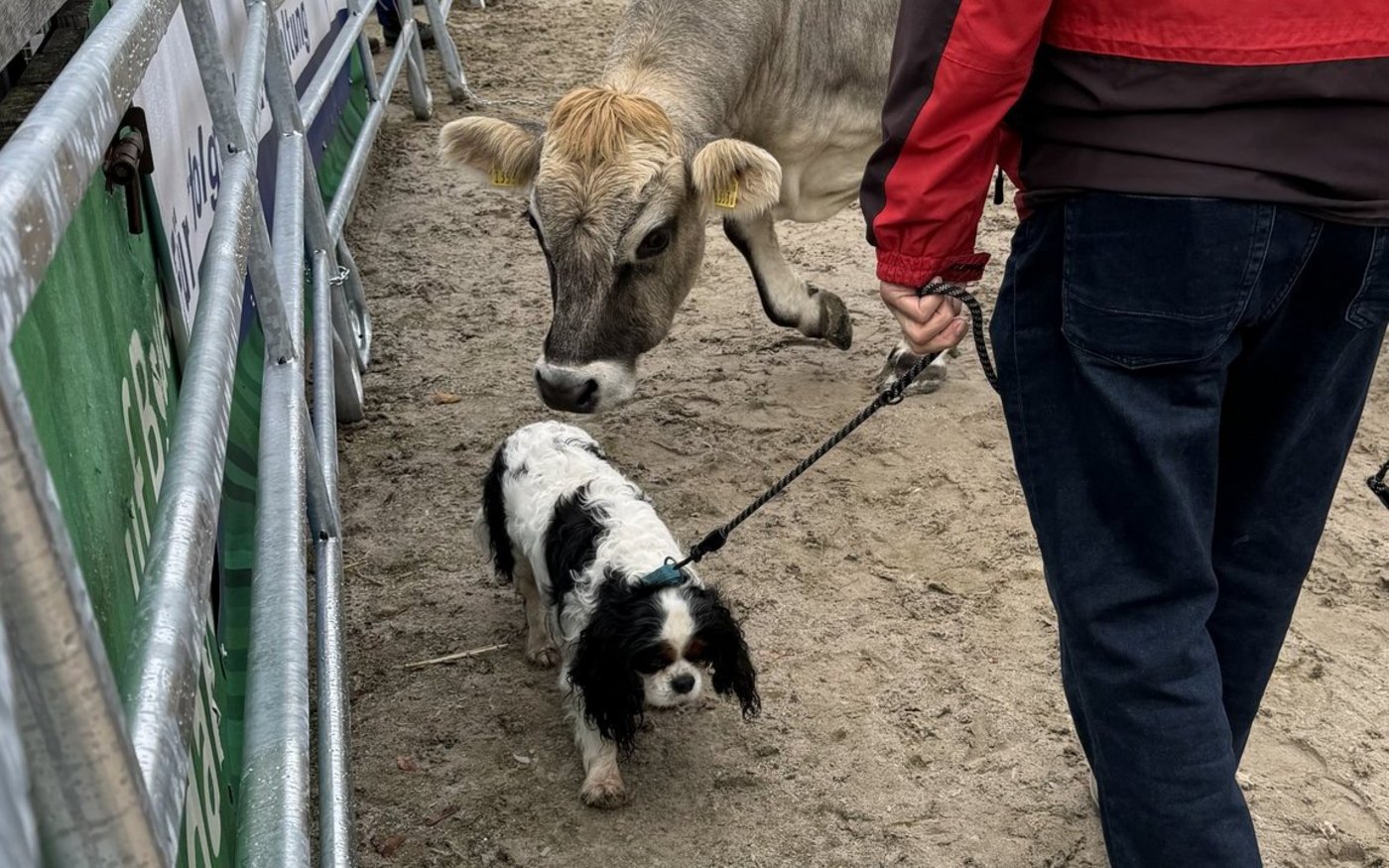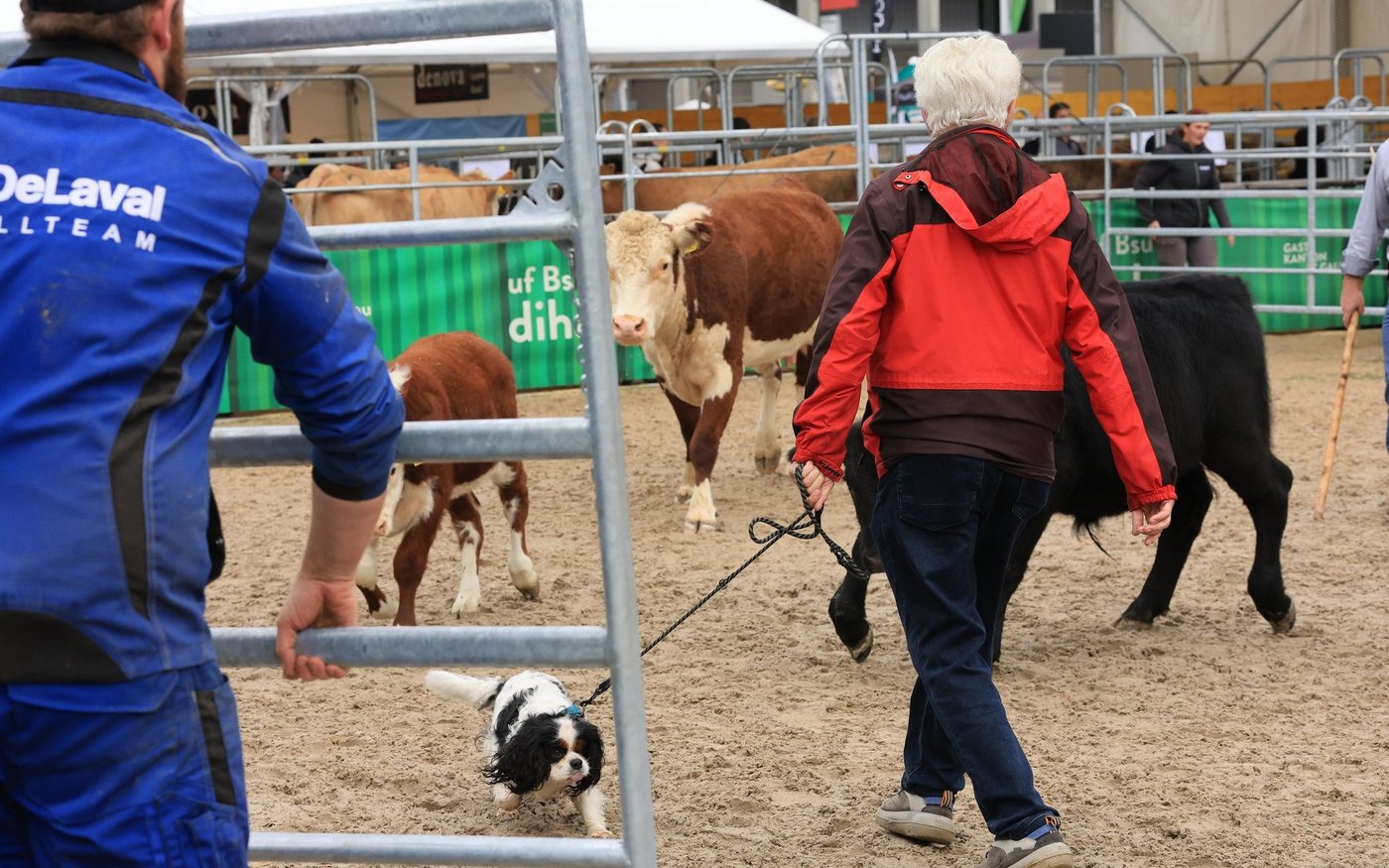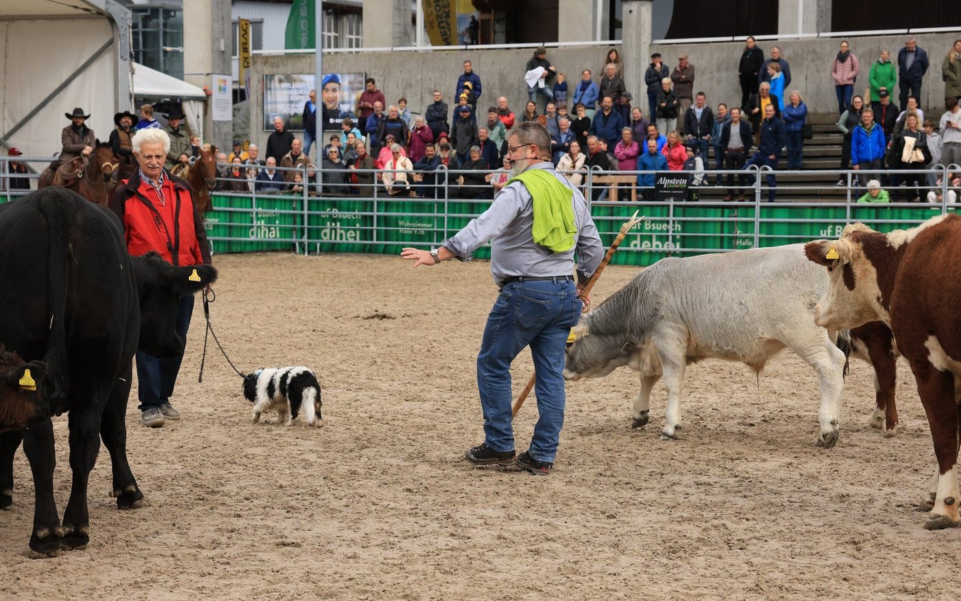 Wie wehrhaft Mutterkühe sein können, zeigte sich auch, als zu Demonstrationszwecken der kleine King-Charles-Hund «Filou» mit seinem Besitzer die Arena betrat.