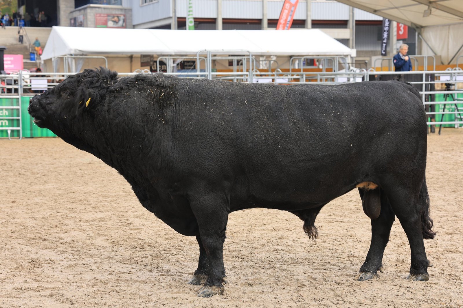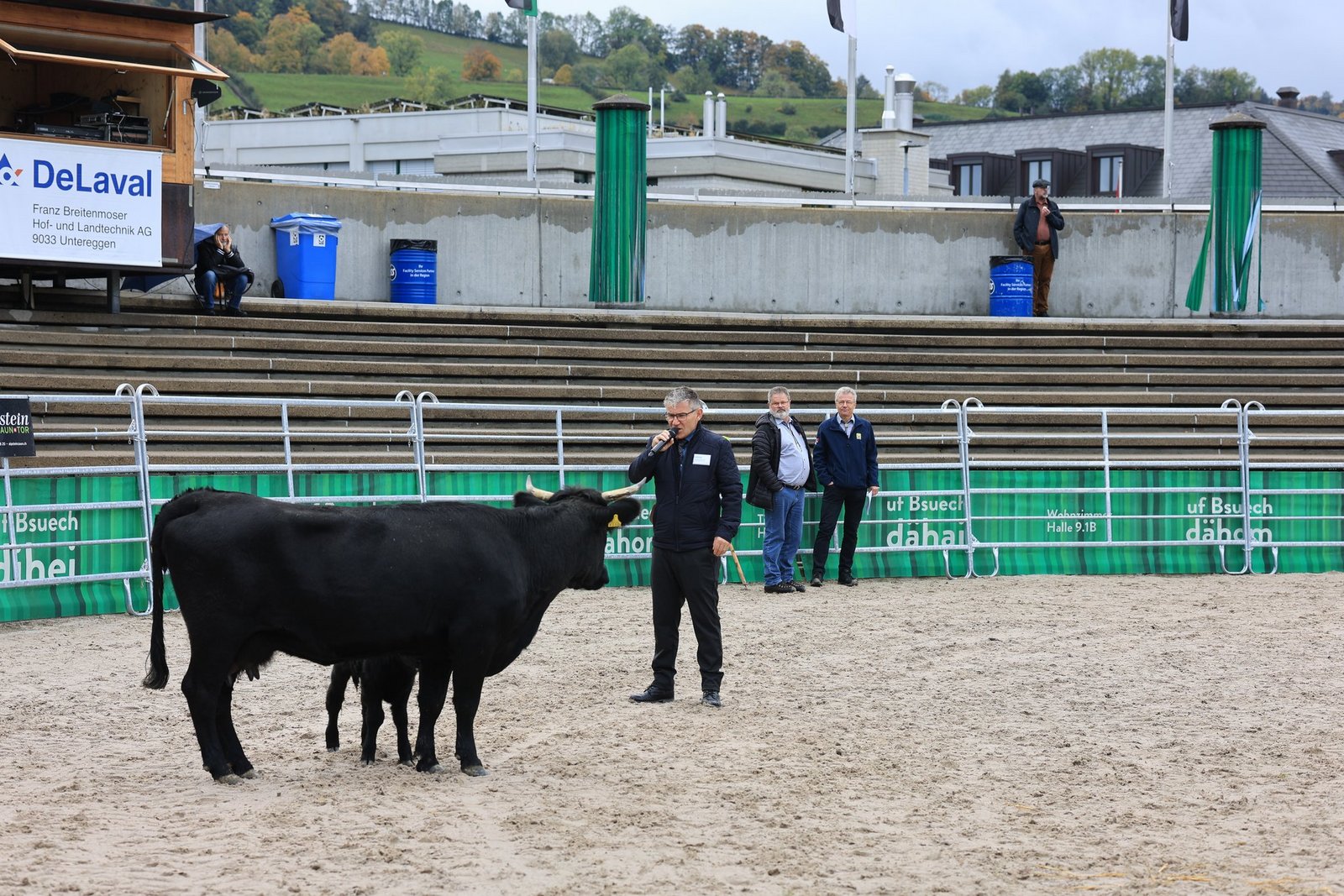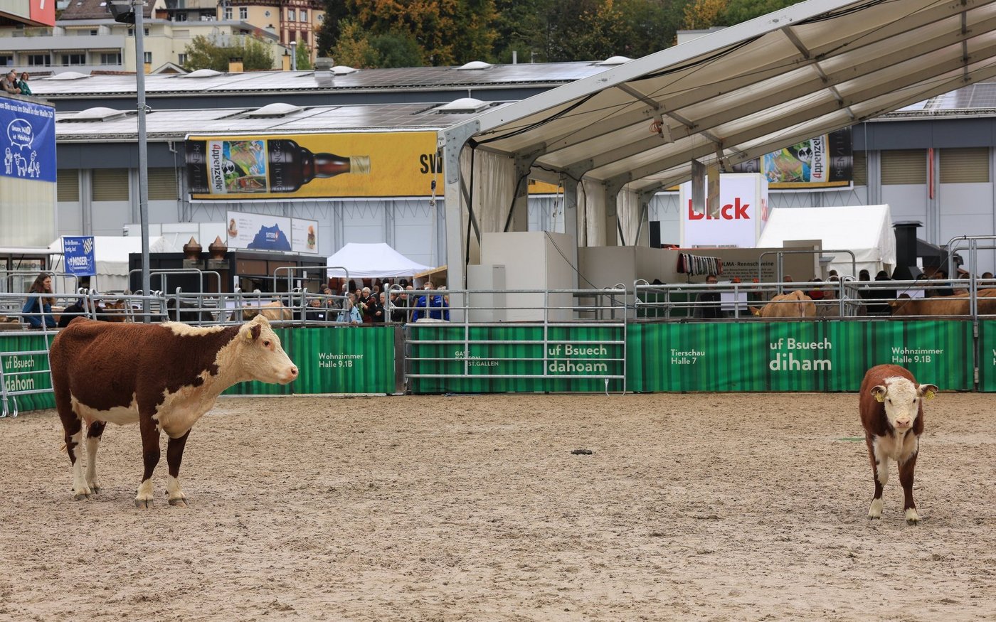 Er tat dies in der Olma Arena, umgeben von verschiedenen Mutterkuh-Rassen. Hier erklärten Christian Manser, Mitorganisator der Olma und Urs Vogt, von der Organisation Mutterkuh Schweiz zuerst die Grundprinzipien der Mutterkuhhaltung, nämlich, dass das Kalb mit der Mutter auf der Weide aufwächst. Im Ring standen dazu ein paar Dexter-Kühe, sowie der Dexter-Stier «Eric», der bereits über 30 Nachkommen verfügt.