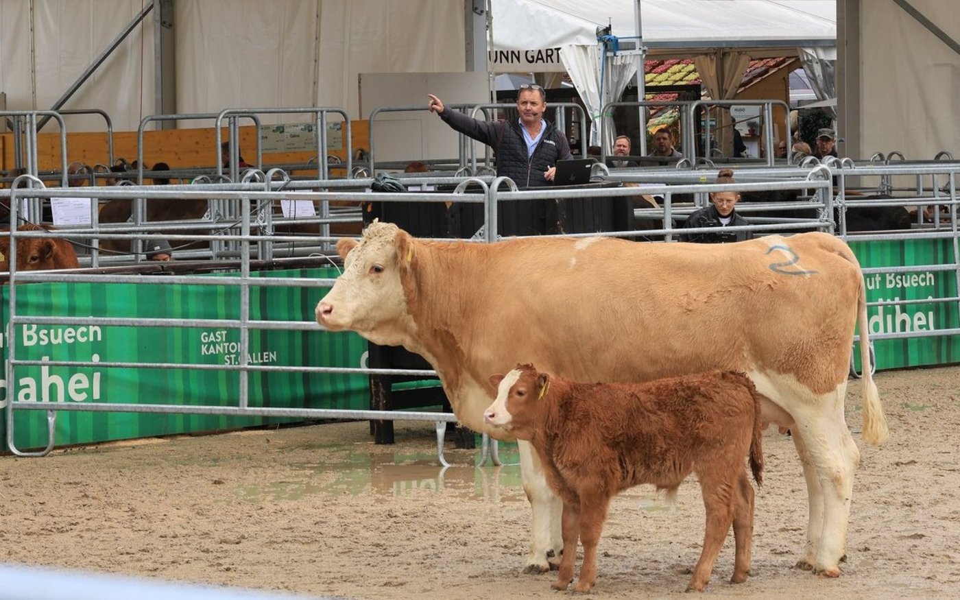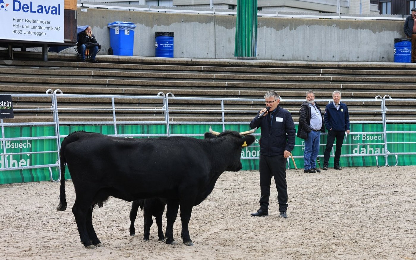 Geleitet wurde sie von Urs Jaquemet, Direktor der Vianco. Insgesamt gingen 24 Tiere (17 trächtige Rinder und 7 Kühe mit Kalb), unter den Hammer. «Das ist eine wunderbare Auswahl von hervorragender Qualität», warb zu Beginn der Veranstaltung, Jaquemet für die Tiere.