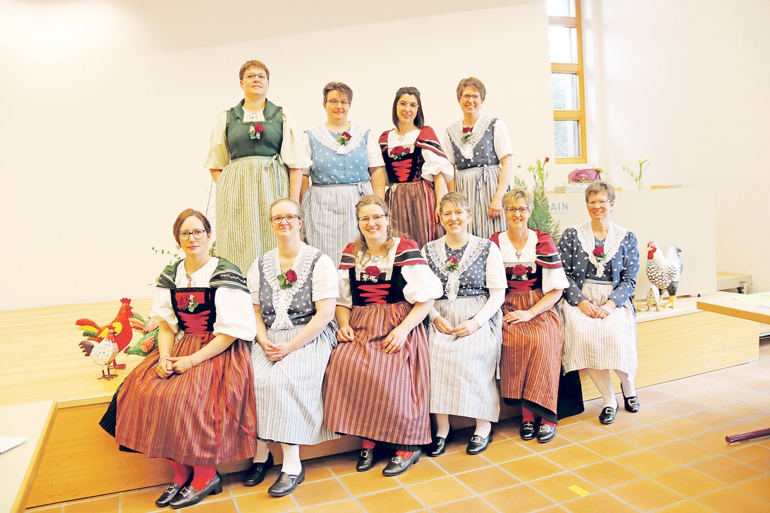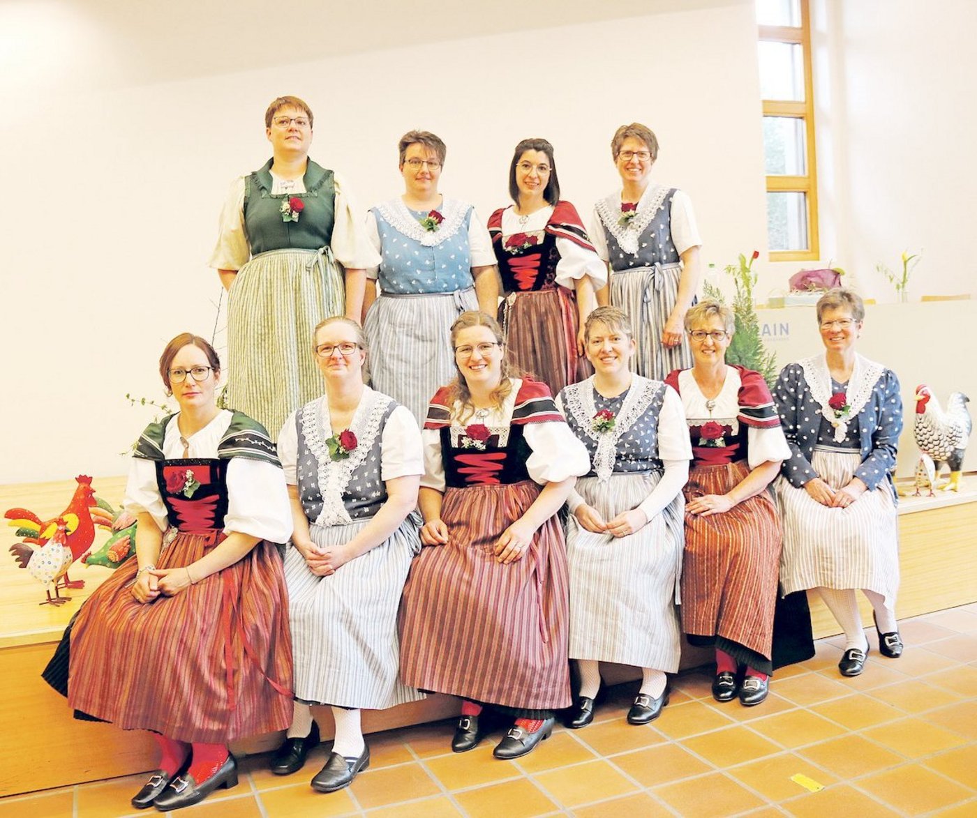 Die Bäuerinnen und Landfrauen beider Basel leben Traditionen nach wie vor. So präsentierte sich der Vorstand mit der neuen Präsidentin Evelyne Gasser (hinten, zweite von rechts) an der GV geschlossen in der Tracht. Gasser folgte auf Myriam Gysin, die das Amt acht Jahre engagiert inne hatte.