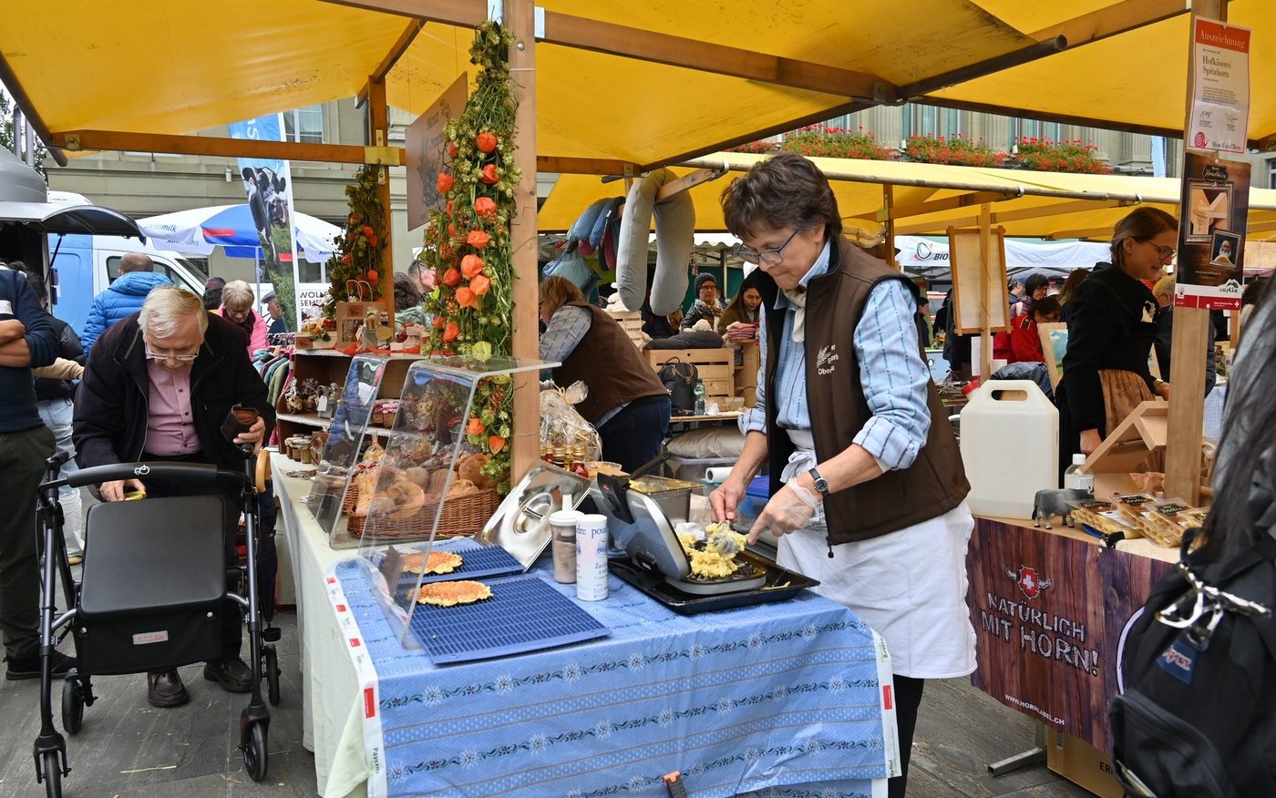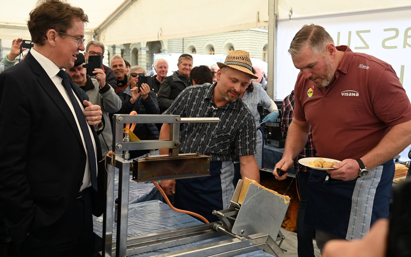 Die Sichlete 2024 gehört bereits wieder der Vergangenheit an. Zahlreich schlenderten kleine und grosse Besucherinnen und Besucher den Ständen entlang. Es gab einiges zu degustieren, bestaunen, kaufen aber auch streicheln. Besonders viele Zuschauer verfolgten den traditionellen Alpabzug durch die Stadt zum Sichleteplatz. Die Familie von Markus und Annina Schweizer aus Utzigen, ein paar ihrer Kühe und die Helfer sind nun auf zahlreichen Handy-Kameras verewigt. Nebst der kurzen Rede von Jürg Iseli, Präsident des Berner Bauernverbands, hielt Bundesrat Albert Rösti eine flammende Rede auf die Landwirtschaft und liess sich von Schwingerkönig Christian Stucki eine Portion Raclette servieren.