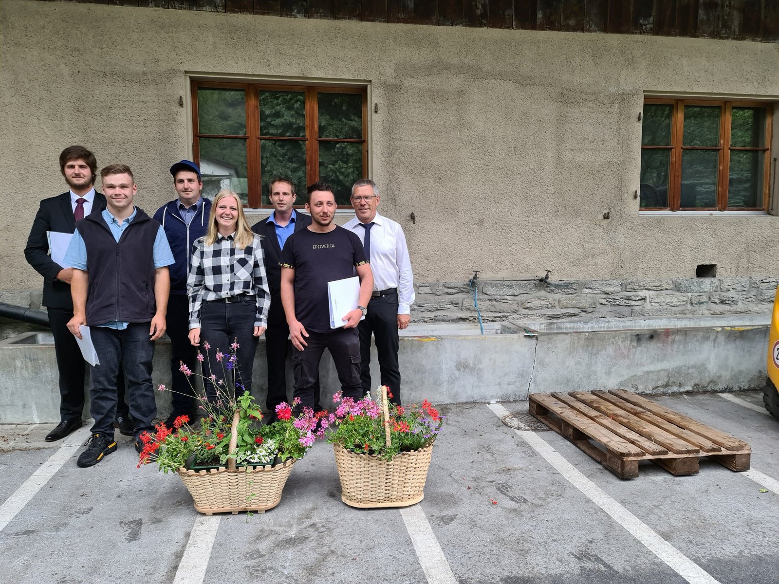 Am Dienstag 28. Juni fand am Landwirtschaftszentrum (LZV) in Visp die traditionelle Schlussfeier statt. In einer gemütlichen und familiären Atmosphäre konnten eine Absolventin und fünf Absolventen der Berufsschule für Landwirtschaft ihre Fähigkeitszeugnisse als Landwirt/in EFZ in Empfang nehmen. Dies sind: Janic Eggs (Zweitausbildung, Lehrbetrieb Samuel Berclaz, Ergisch); Vivianne Fux (Zweitausbildung, Carmen und Nicolas Lötscher, Unterbäch); Maurizio Jäger (Zweitausbildung, Thomas Elmiger, Pfynguet, Turtmann); Nino Jordan (Landwirtschaftszentrum, Gondo); Frédéric Mathieu (Thomas Elmiger, Pfynguet, Albinen); Lars Zenhäusern (Nachholbildung, Bürchen).