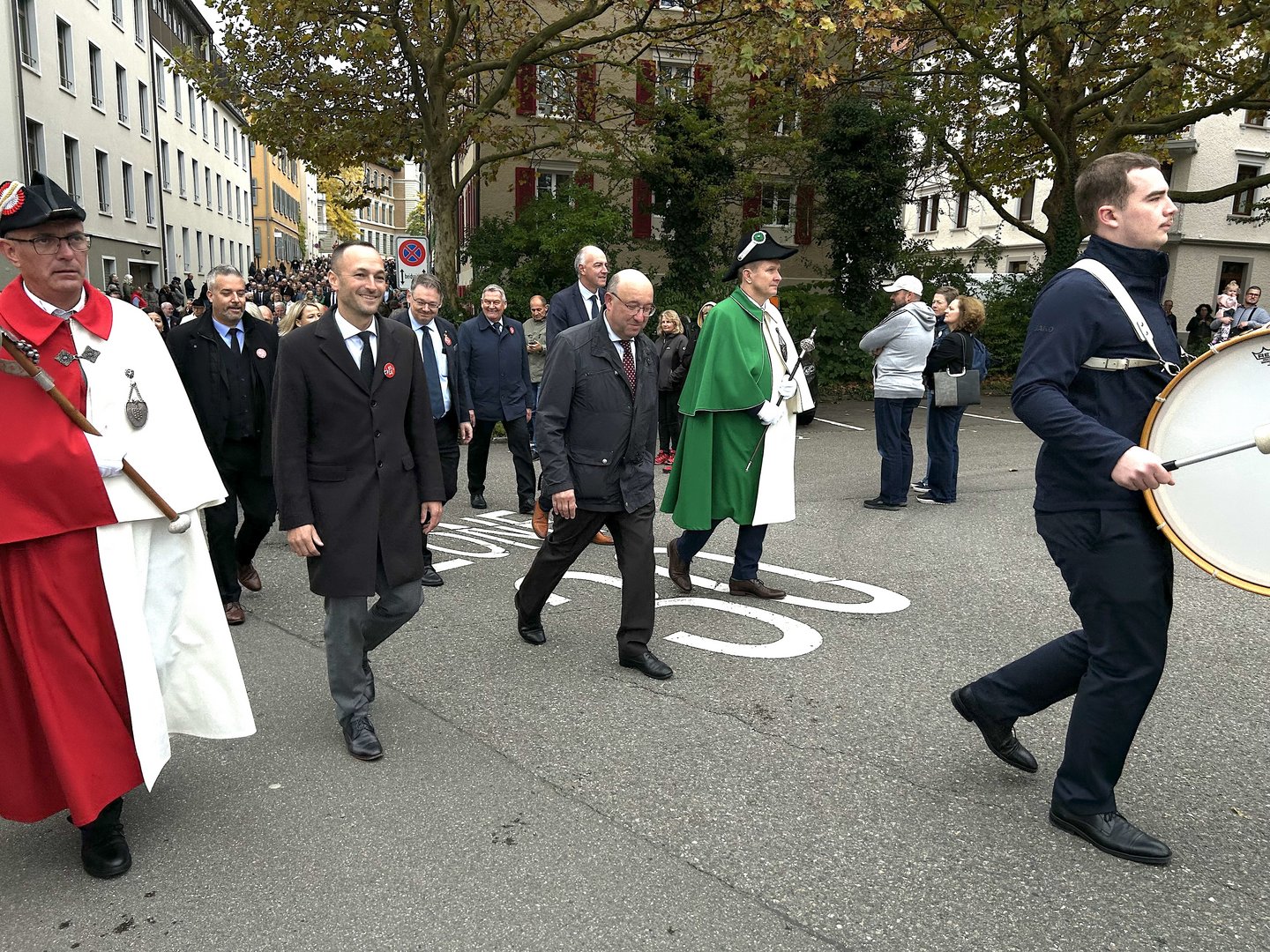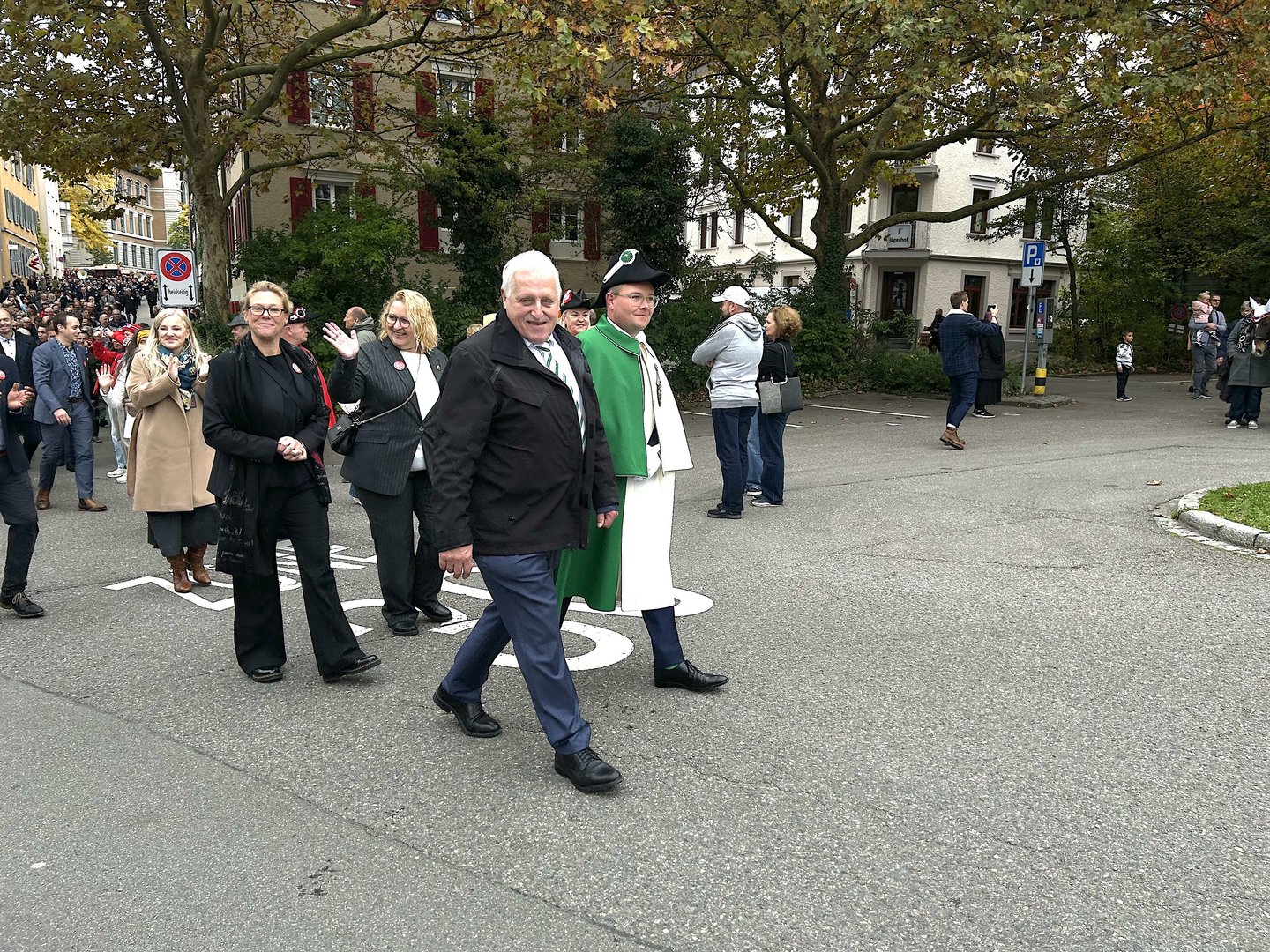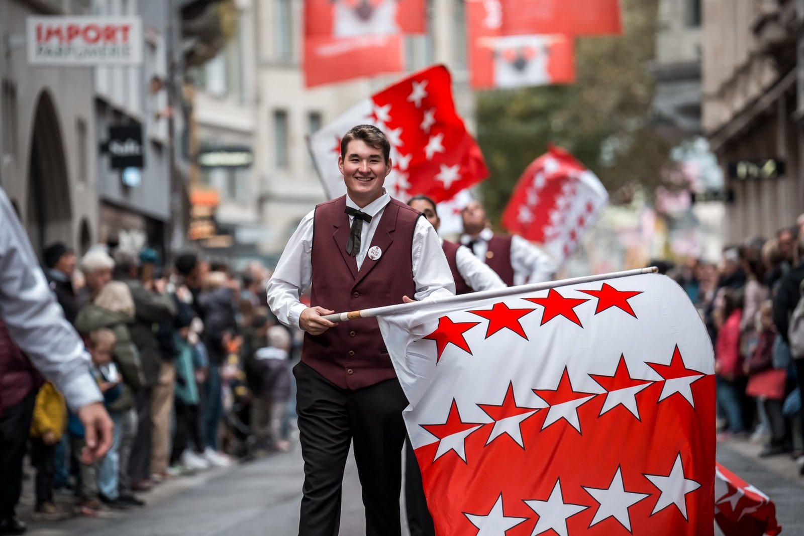 Über 700 Mitwirkende aus dem Gastkanton Wallis waren nach St.Gallen gereist, um die Vielfalt des Kantons beim traditionellen Umzug zu präsentieren. Walliser Fahnen wirbelten durch die Luft. Blasmusik, Jodellieder, Guggenmusik und Alphornklänge erschallten in den Strassen. Auch Schwarznasenschafe, Eringerkühe und Bernhardinerhunde legten den Weg zum St.Galler Stadttheater zurück. Angeführt wurde der Umzug von Politiker(innen) und Repräsentanten der beiden Kantone. Den Abschluss bildeten die Santiglais Triichle aus Oberwald.