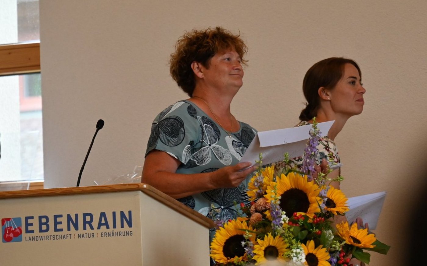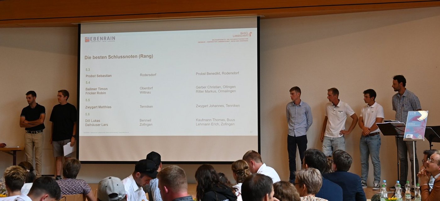Für die Auszubildenden bedeutet die Abschlussfeier den Abschied vom Ebenrain. Ebenfalls den letzten Tag haben heute zwei Personen aus der Politik, die ein Grusswort an die frischen Berufsleute richten. Lucia Mikeler Knaack hat ihren letzten Tag als Landratspräsidentin des Kantons Basel-Landschaft, die Feier ist ihre letzte Amtshandlung. Sie betont, dass den Absolventinnen und Absolventen nun viele Türen offen stünden.Sei dies auf einem Betrieb, auf dem Weg in die Forschung oder auch bei der Beratung. Und: «Sie haben mit ihrer Ausbildung am Ebenrain Wissen erlangt, um den Herausforderungen der Landwirtschaft zu begegnen.»